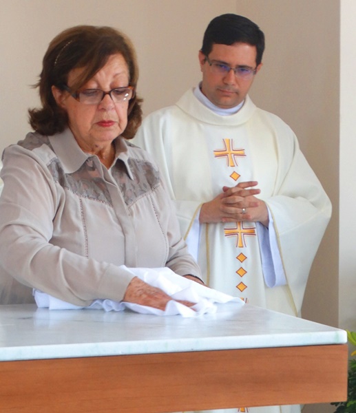 Como é determinado pela Igreja, foi feita a leitura pública da ata de Dedicação do Altar pelo pároco e chanceler da diocese, Pe. Luzair Coelho de Abreu, que explicou aos presentes que a ata foi feita em três vias: uma para arquivo na cúria diocesana, outra para arquivo paroquial, e a terceira via para arquivo no Lar Vicentino.