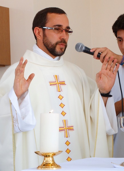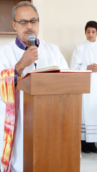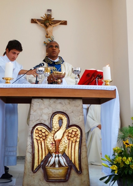 Após o Rito de Dedicação, a missa transcorreu com a Liturgia Eucarística e Ritos finais. A comunhão foi distribuída pelo pároco, Pe. Luzair a todos os assistidos