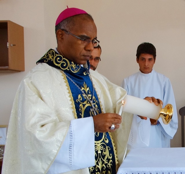O bispo iniciou sua homilia, comentando com os fiéis a importância da celebração: “Os sinais sacramentais e os sinais da presença de Deus falam forte na Vigília Pascal, e quando dedicamos uma Igreja ou um altar. O povo no silêncio colhe a beleza da presença de Deus. A beleza da glória de Deus que muitos padres da igreja cantaram e muitos teólogos tentaram descrever. ”