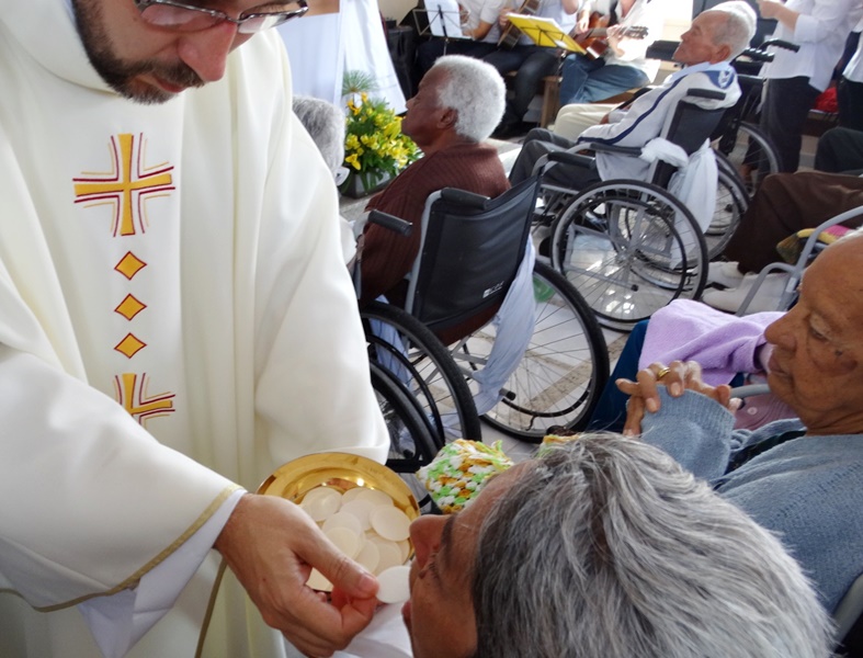O bispo continuou comentando sobre o evangelho: “O sacrifício da cruz, que Jesus vai celebrar e abraçar por todos nós, vai universalizar a presença de Deus em todos os lugares, em todos os templos, em todos os povos, raças, nações. É exatamente esse sentido que tem o evangelho. Jesus, portanto, mostra esse alcance salvífico que sua morte terá. “