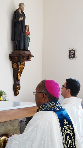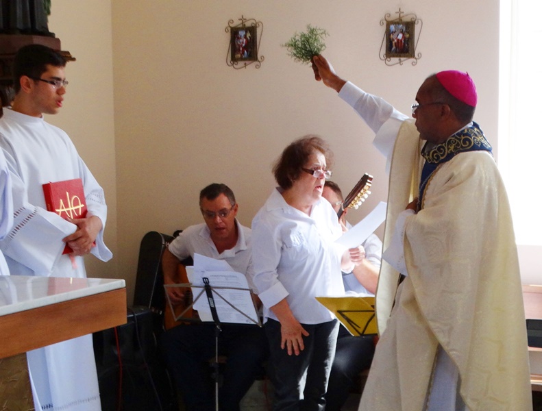 Logo após a procissão de entrada, D. Pedro benzeu e aspergiu o povo, em sinal penitencial e em memória do batismo. Aspergindo todos os locais do templo, o bispo também o abençoou, bem como os objetos litúrgicos nele pertencentes, como a Via Sacra. E, por fim, aspergiu o altar que seria dedicado.