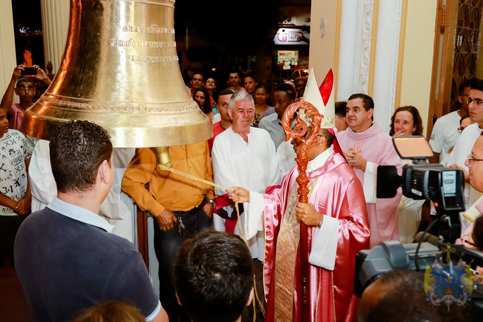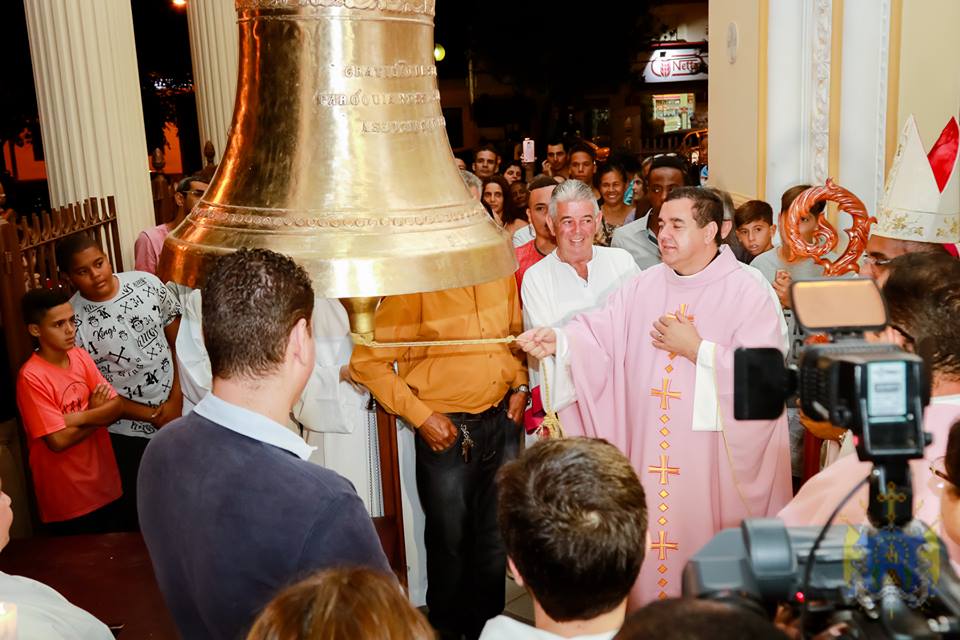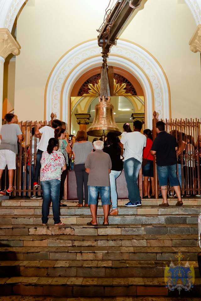 Ao término da Santa Missa, a assembleia ouviu a primeira badalada pelas mãos ungidas de Dom Pedro.