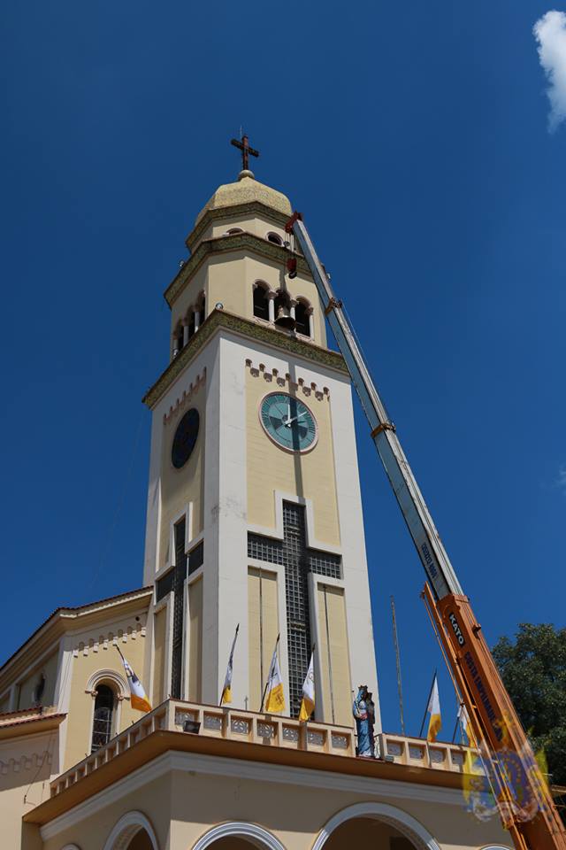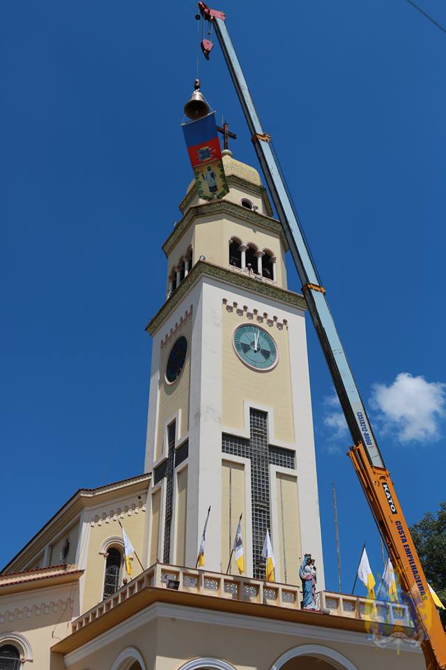 Finalmente, no dia 26, após a missa das 10 horas e 30 minutos, o sino foi levado à torre por um guindaste, de onde pendiam a bandeira da Paróquia Nossa Senhora d´Ajuda, o banner do Beato Francisco de Paula Victor e o brasão do Bispo Diocesano.