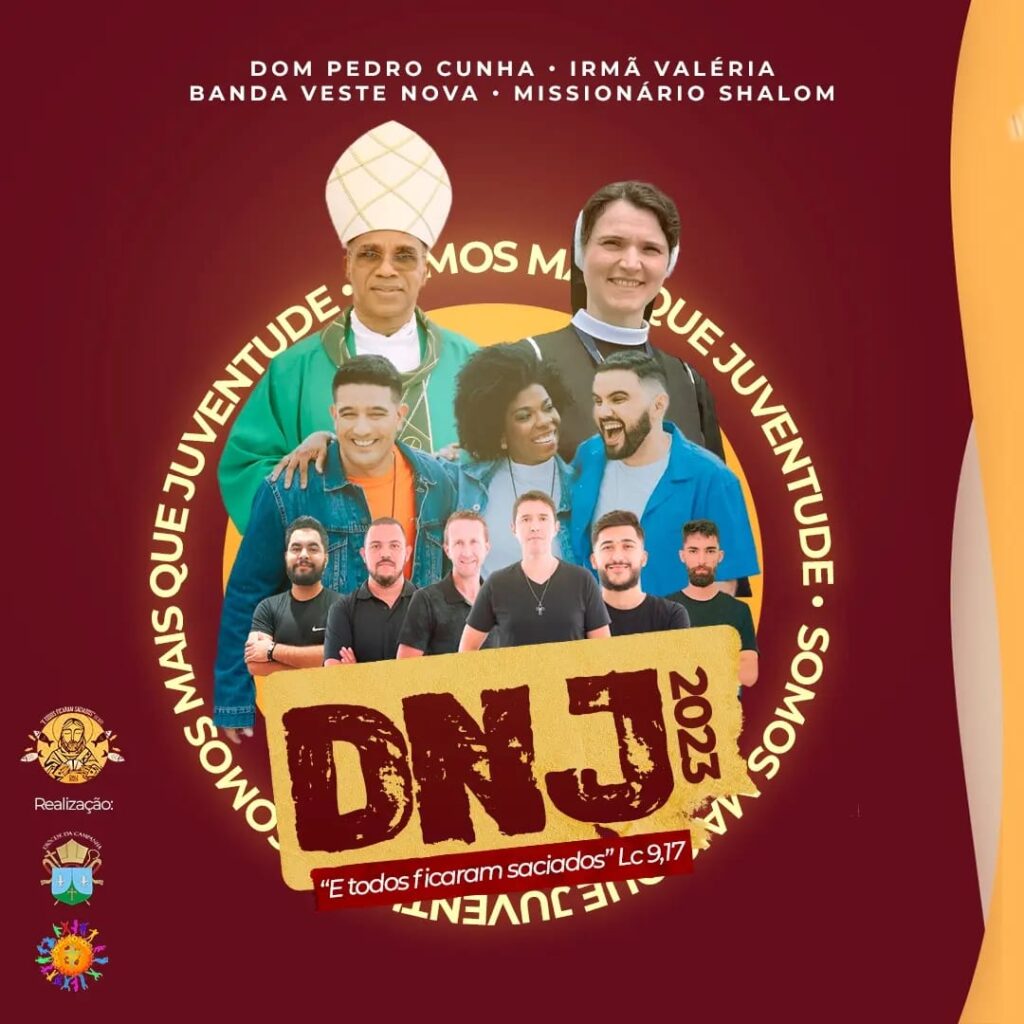 Em nossa Diocese, o DNJ 2023 será muito especial. Momento de celebrar a pluralidade de carismas e de, em unidade, bebermos do Cristo e transbordarmos da vida dos irmãos. Para isso, nosso DNJ contará com presenças ilustres: nosso Bispo Diocesano, Dom Pedro Cunha; Irmã Valéria Leal; Missionário Shalom; Ministério Veste Nova e muito mais.