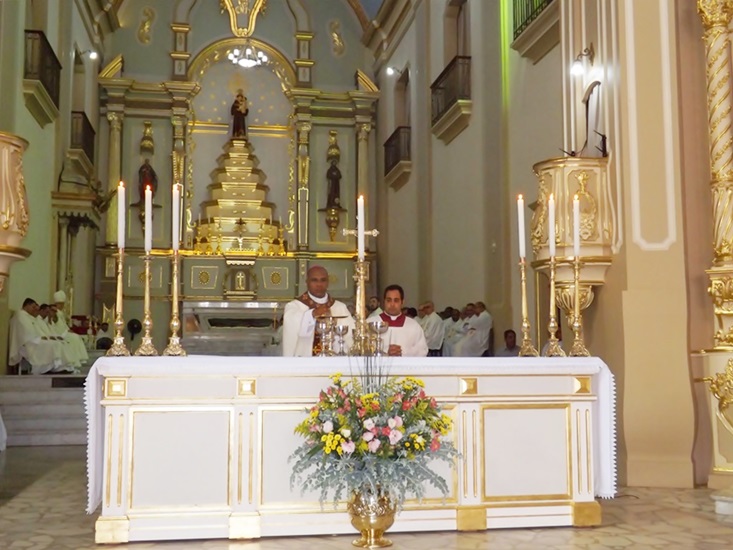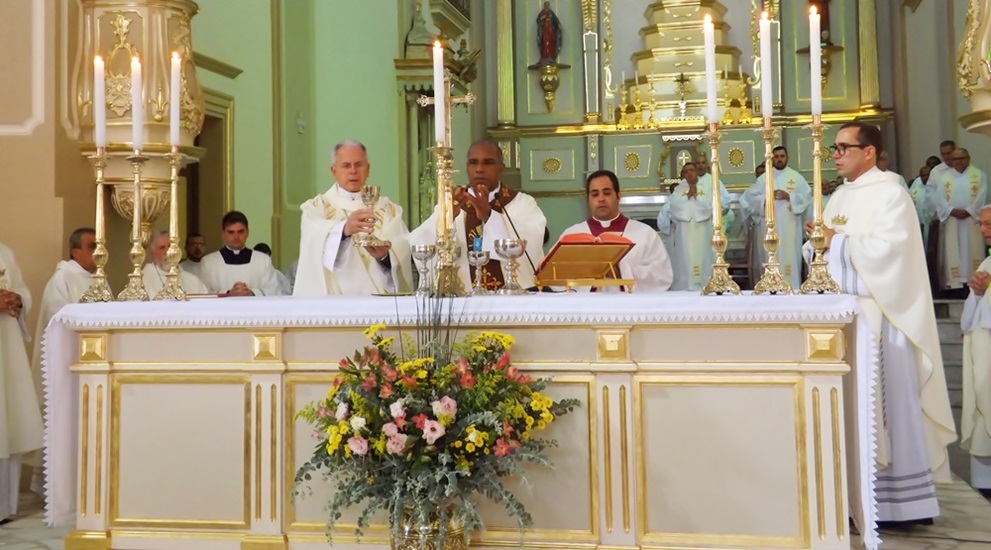 Com grande presença do clero, de religiosas, de seminaristas e das caravanas oriundas das paróquias a Celebração Eucarística foi presidida por Dom Pedro Cunha Cruz, nosso bispo diocesano. Fomos também honrados pela presença de Dom José Luiz Majella Delgado, Arcebispo Metropolitano de Pouso Alegre, reafirmando os profundos vínculos que unem as dioceses que formam a nossa Província Eclesiástica.
