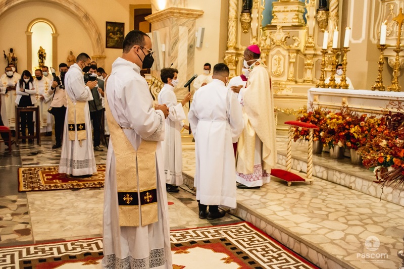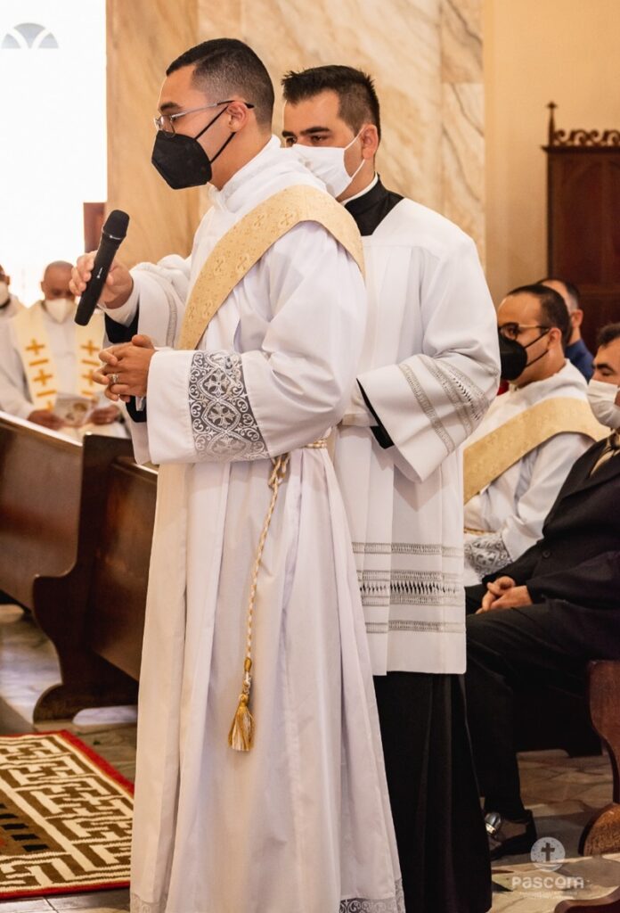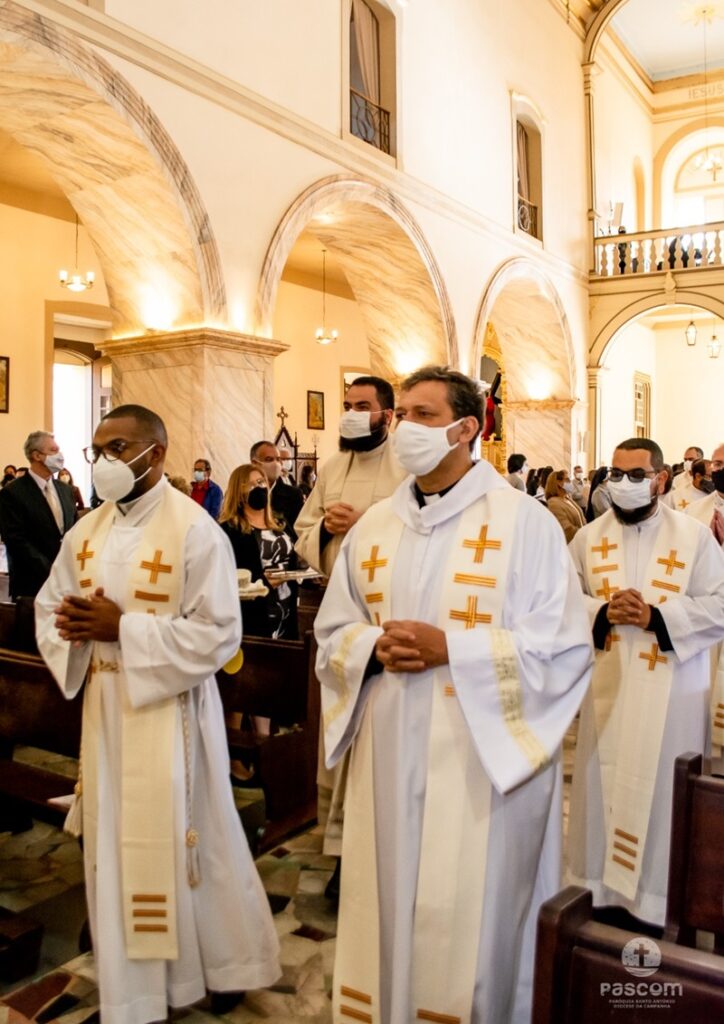 Na manhã do último sábado, dia 7 de agosto, na Catedral Santo Antônio, foram ordenados os diáconos Flávio Henrique Ribeiro e Marcus Vinícius Tertuliano Ribeiro pela imposição de mãos de Dom Pedro Cunha Cruz, bispo diocesano. Também esteve presente à celebração o bispo emérito Dom Diamantino Prata de Carvalho, ofm. As restrições sanitárias impostas pelo período pandêmico restringiram a presença e participação do clero diocesano (estando presentes cerca de 1/3 dos padres da diocese), bem como dos fiéis (neste período a catedral pode receber apenas 100 participantes em cada celebração). A animação da celebração ficou a cargo do coro Paroquial de Sant’Ana de Varginha.
