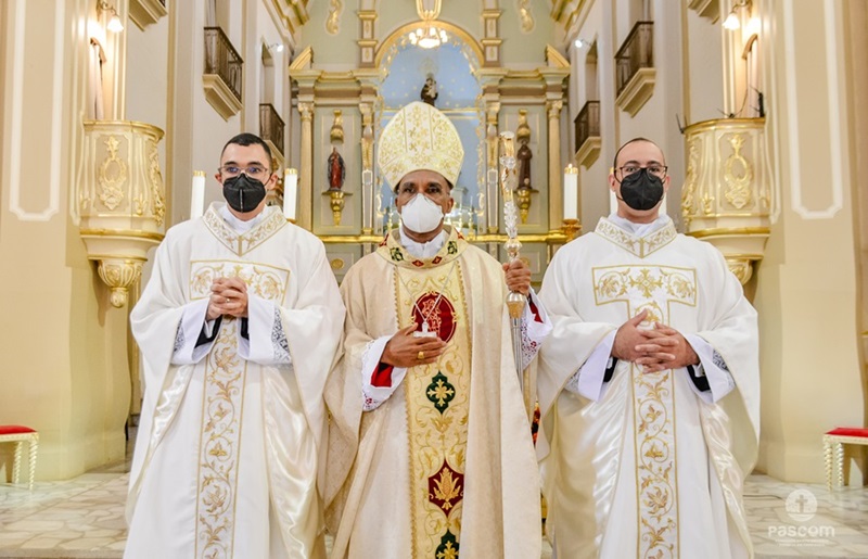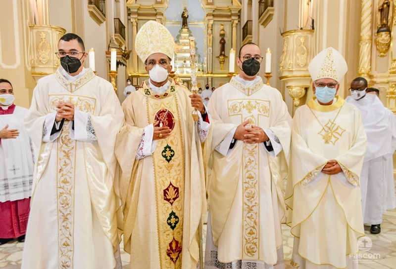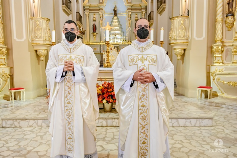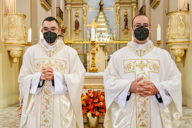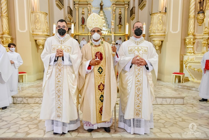 Na manhã do último sábado, dia 7 de agosto, na Catedral Santo Antônio, foram ordenados os diáconos Flávio Henrique Ribeiro e Marcus Vinícius Tertuliano Ribeiro pela imposição de mãos de Dom Pedro Cunha Cruz, bispo diocesano. Também esteve presente à celebração o bispo emérito Dom Diamantino Prata de Carvalho, ofm. As restrições sanitárias impostas pelo período pandêmico restringiram a presença e participação do clero diocesano (estando presentes cerca de 1/3 dos padres da diocese), bem como dos fiéis (neste período a catedral pode receber apenas 100 participantes em cada celebração). A animação da celebração ficou a cargo do coro Paroquial de Sant’Ana de Varginha.