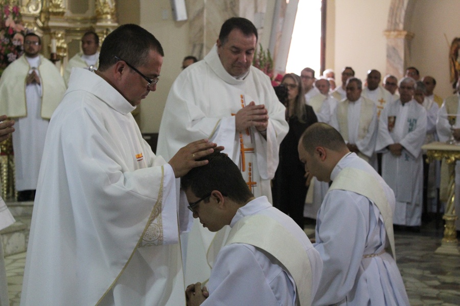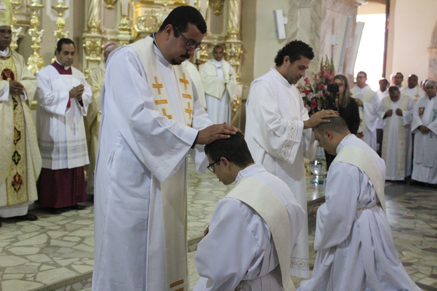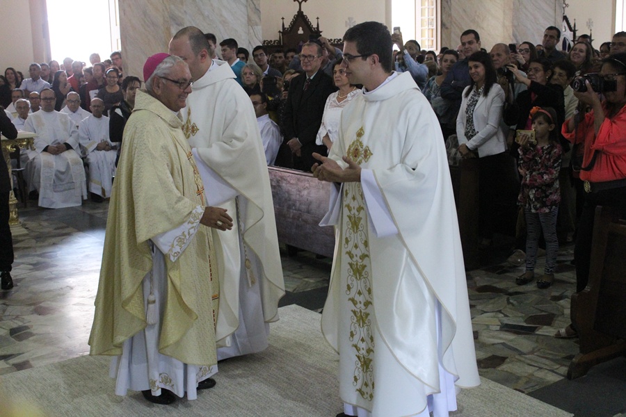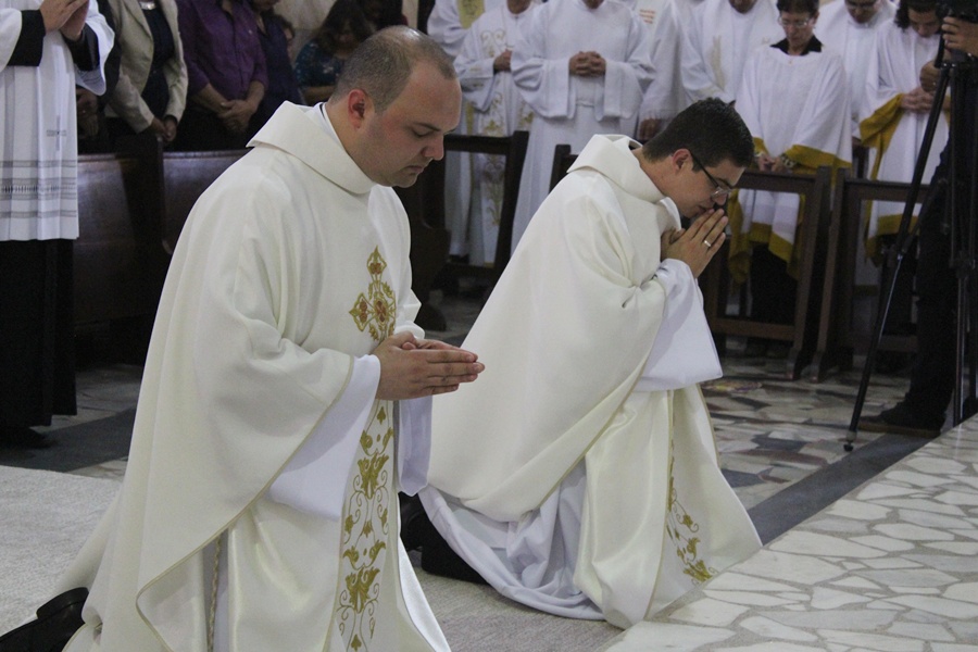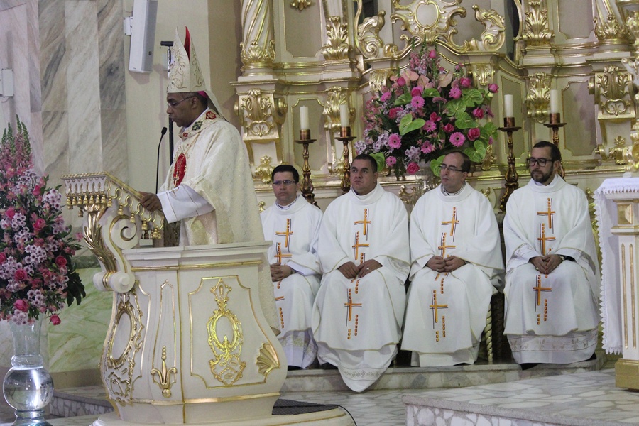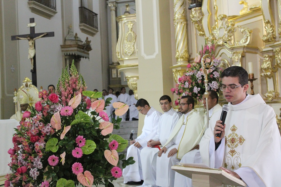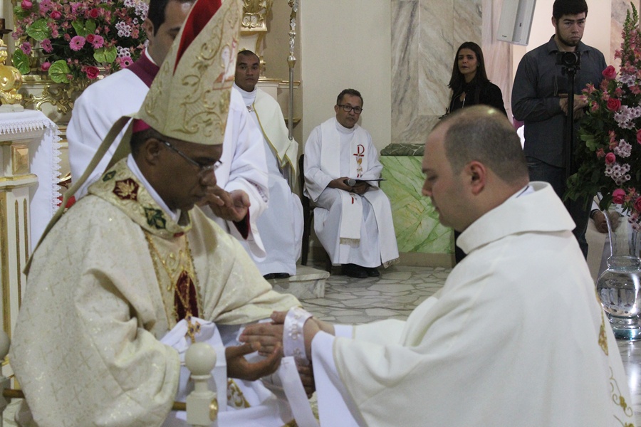 “A primeira leitura desta Santa Missa de ordenação sacerdotal destaca a beleza da vocação dos pastores, que não de ser também a nossa própria vocação. No versículo 2, de sua carta, São Pedro nos lembra: “Sede pastores do rebanho de Deus, confiado a vós, cuidai dele” [1 Pd 5, 2]. Estamos no mês vocacional. A ordenação de um presbítero é a celebração da resposta ao mistério do chamado de Deus a cada um de nó, humildes e frágeis criatura. Como bem descreveu São joão Paulo II na Pastores dabo Vobis [Exortação pós-sinodal] número 36: “A história de cada vocação presbiteral, como aliás qualquer outra vocação cristã, é a história de um inefável diálogo entre Deus e o homem, entre o amor que chama e a liberdade do homem que no amor responde a Deus”. Este é o mistério do chamamento; mistério que envolve a vida daqueles que Cristo convida a deixar tudo para O seguir mais de perto.”