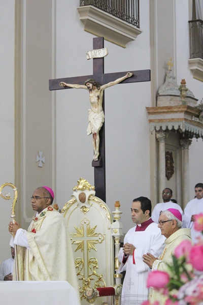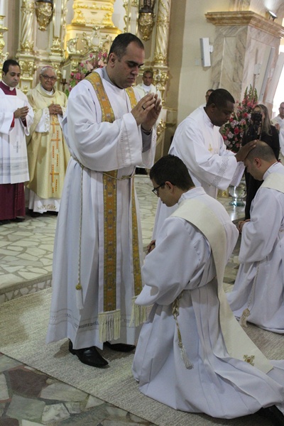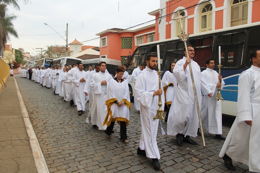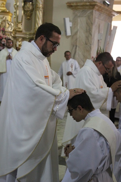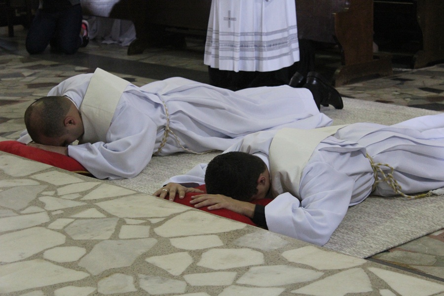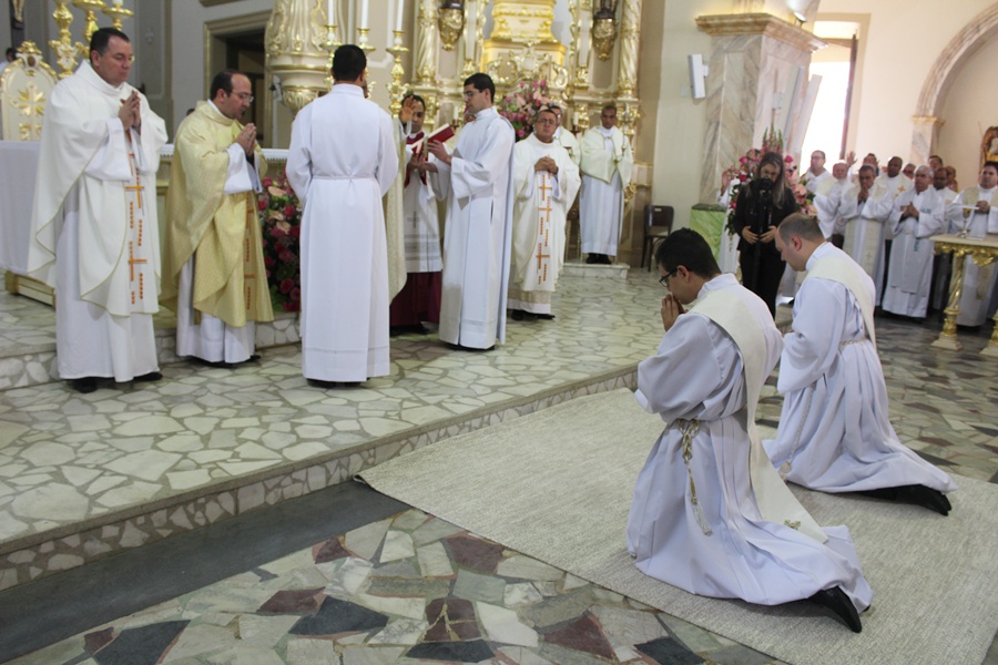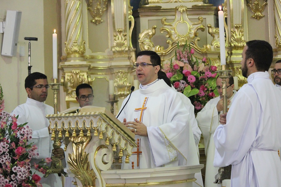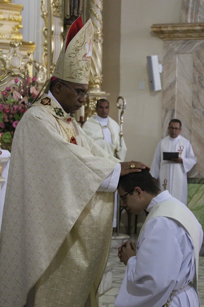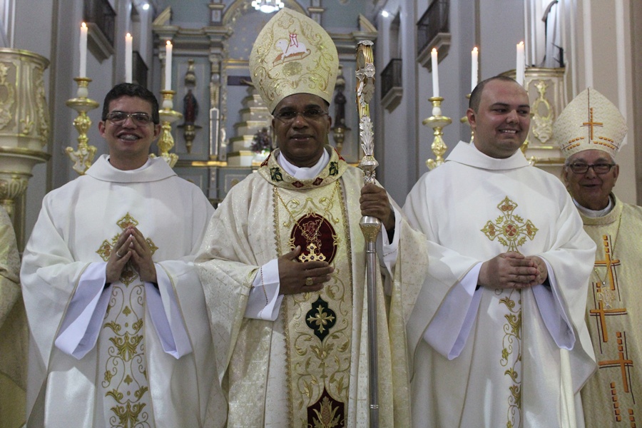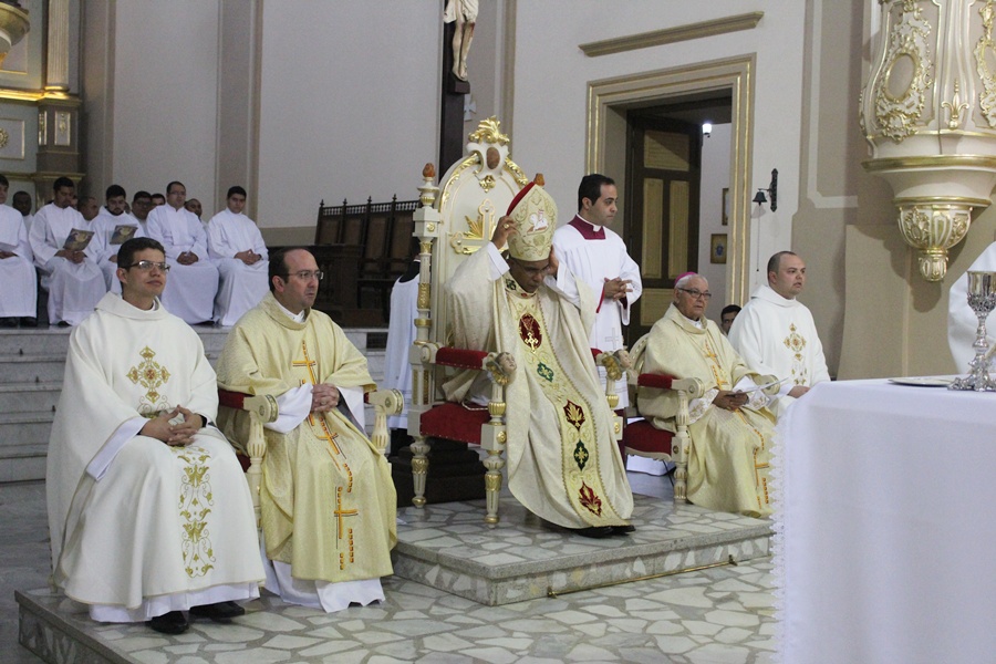 “A primeira leitura desta Santa Missa de ordenação sacerdotal destaca a beleza da vocação dos pastores, que não de ser também a nossa própria vocação. No versículo 2, de sua carta, São Pedro nos lembra: “Sede pastores do rebanho de Deus, confiado a vós, cuidai dele” [1 Pd 5, 2]. Estamos no mês vocacional. A ordenação de um presbítero é a celebração da resposta ao mistério do chamado de Deus a cada um de nó, humildes e frágeis criatura. Como bem descreveu São joão Paulo II na Pastores dabo Vobis [Exortação pós-sinodal] número 36: “A história de cada vocação presbiteral, como aliás qualquer outra vocação cristã, é a história de um inefável diálogo entre Deus e o homem, entre o amor que chama e a liberdade do homem que no amor responde a Deus”. Este é o mistério do chamamento; mistério que envolve a vida daqueles que Cristo convida a deixar tudo para O seguir mais de perto.”