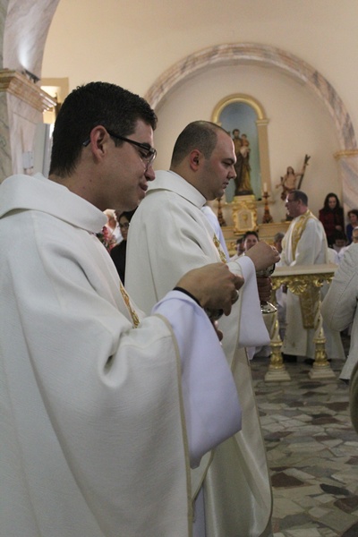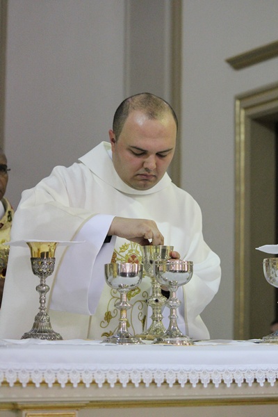 A última parte do Rito de Ordenação apresenta alguns símbolos, ricos em significado e que indicam o ministério sacerdotal da Ordem. Terminada a Prece de Ordenação, o eleito, com o auxílio de um ou dois presbíteros, é revestido com a estola sacerdotal e a casula. Em seguida, de joelhos, a palma das mãos do ordenado é ungida pelo bispo com o óleo do santo Crisma. Logo após, o bispo amarra as mãos do ordenado, e, onde for costume, é desamarrada por quem receberá a primeira bênção sacerdotal, que no caso, foram os pais dos neo-sacerdotes.