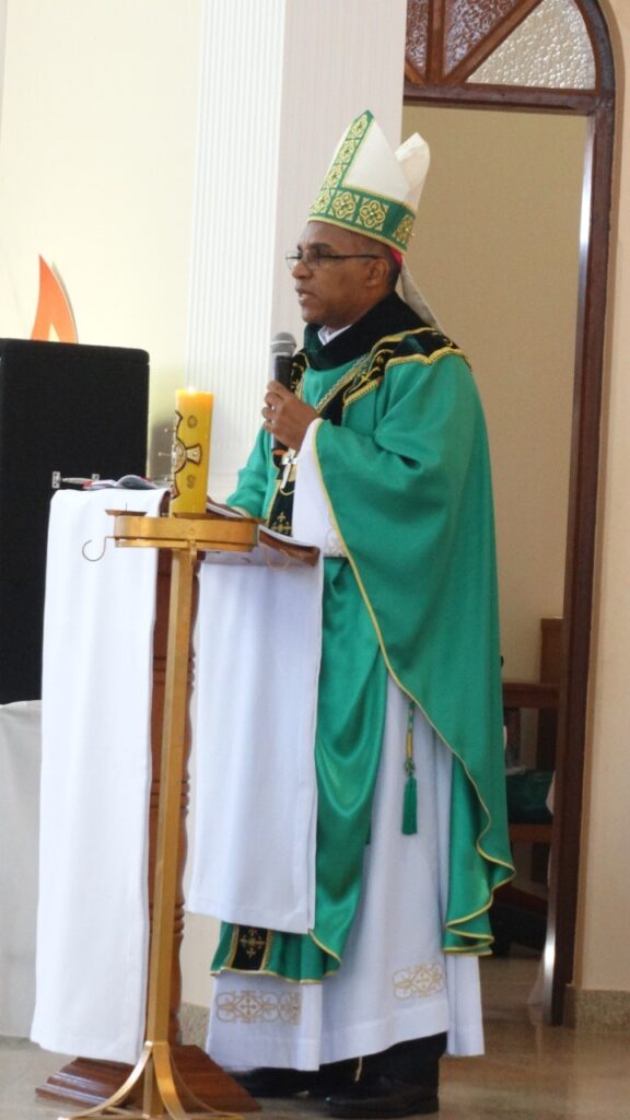 O nosso Bispo, Dom Pedro, conduziu a celebração com muito entusiasmo e alegria, deixando com suas palavras muitos ensinamentos, não só para os jovens que receberam o sacramento da Crisma, mas para todos que ali estavam presentes.