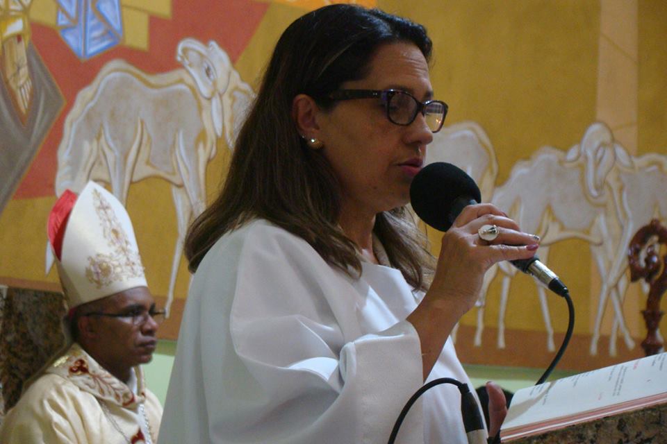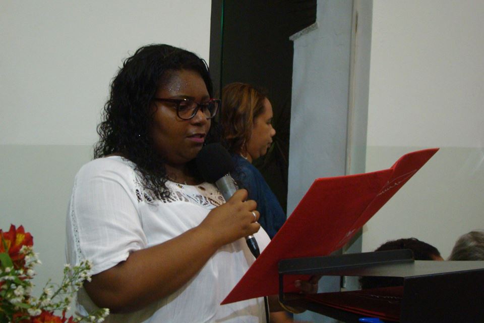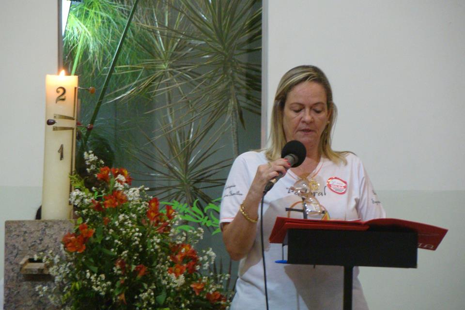 Após a missa a Coordenadora Hilda Amaral saudou o senhor bispo oferecendo-lhe uma lembrança em sinal de gratidão e confiança.