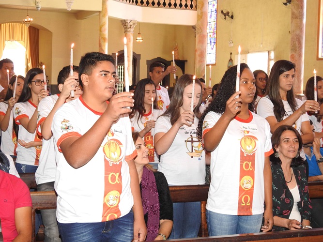 Durante a cerimônia, os crismandos fizeram a renovação das promessas batismais, renunciaram ao pecado e confirmaram sua crença em Deus.
