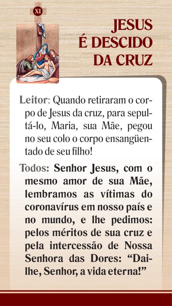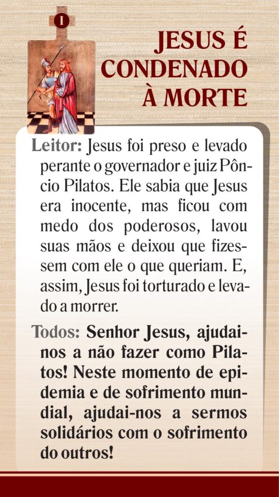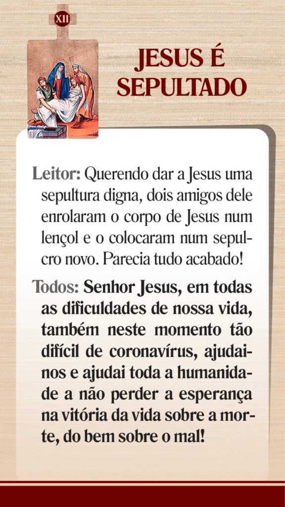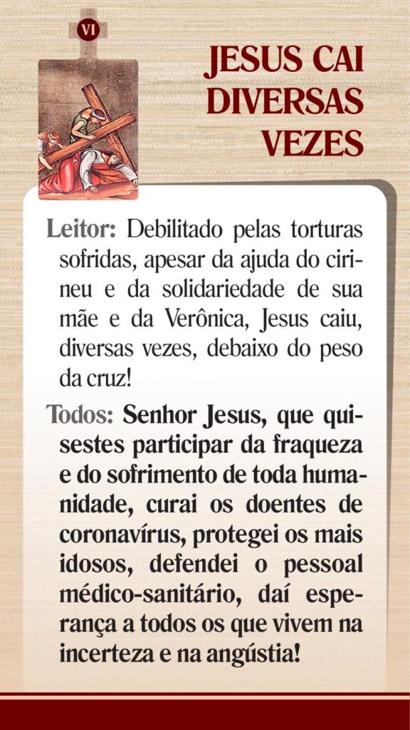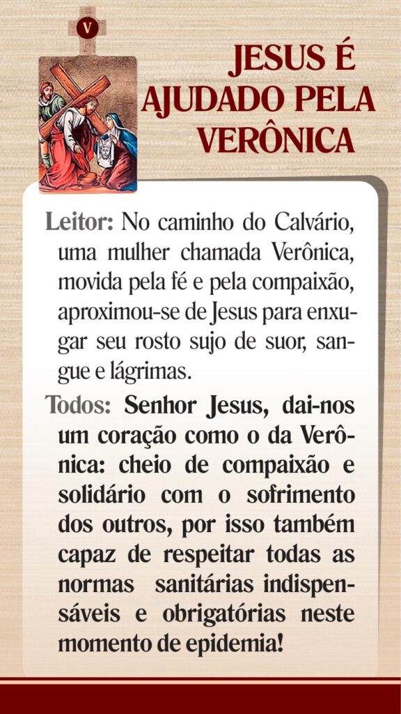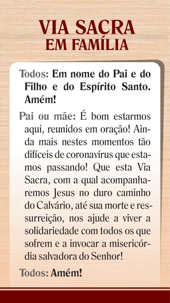 A Via Sacra é um piedoso exercício próprio deste tempo quaresmal. Por isso, Dom Pedro, nosso bispo, propõe à Diocese da Campanha que todas as famílias rezem, sobretudo, suplicando ao Senhor o fim desta pandemia, a cura dos doentes, a salvação do falecidos, a força e o auxílio divinos aos profissionais da saúde, da segurança pública e dos serviços básicos.