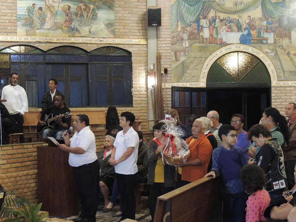 Ao término da Santa Missa, a comunidade presenteou Dom Pedro com uma homenagem e uma cesta com produtos locais. O Sr. Bispo dirigiu-se a comunidade com alegria e agradecimento pela acolhida de nosso povo, sempre agradável e receptivo. Agradeceu, anunciou que retorna em breve para confirmar nossos jovens na fé, com o sacramento da Crisma, e em seguida, deu-nos a benção encerrando esta bela celebração, trazendo a todos nós a normalidade da liturgia eucarística. Terminada a celebração, Dom Pedro concedeu uma entrevista a TV BE, equipe de jornalismo local de nossa cidade, relatando sobre o ocorrido.