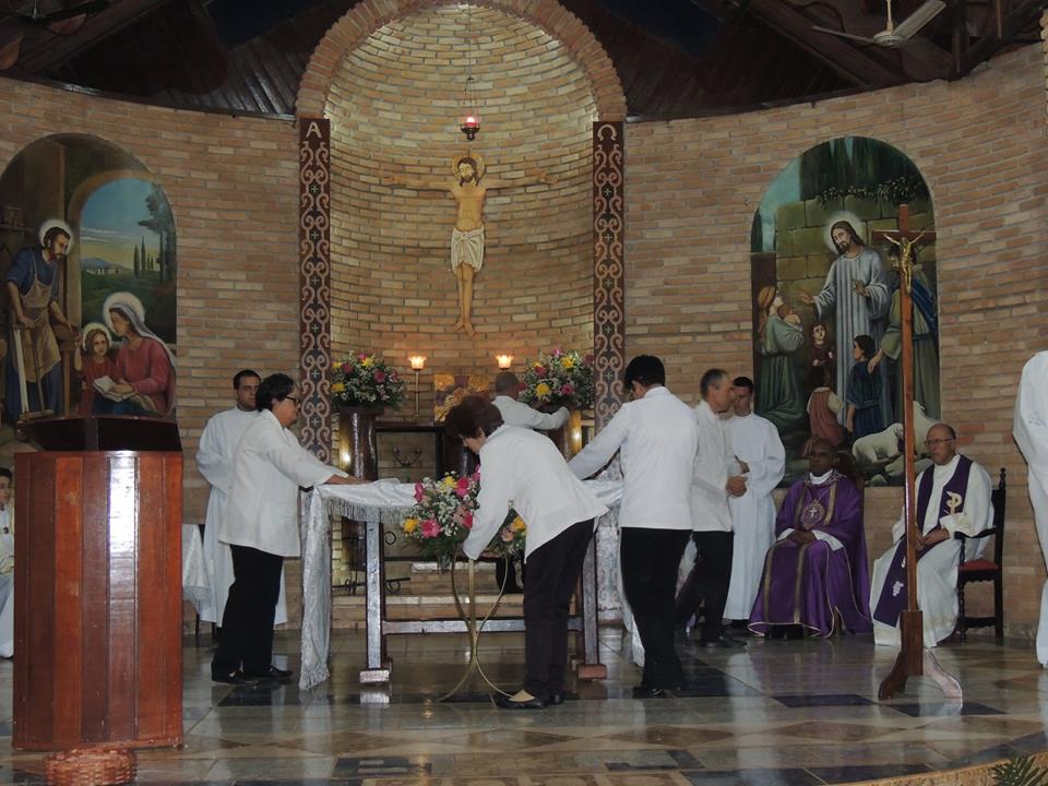 No Rito Sacramental, ao iniciar o canto das oferendas, o altar tomou novamente sua dignidade, foi colocado sobre ele uma toalha digna, onde em seguida recebeu os vasos sagrados para o rito da comunhão. O presbitério, e o sacrário foram iluminados e receberam arranjos florais, fazendo memória a Ressurreição do Senhor. A partir deste momento, o rito eucarístico ocorreu normalmente.