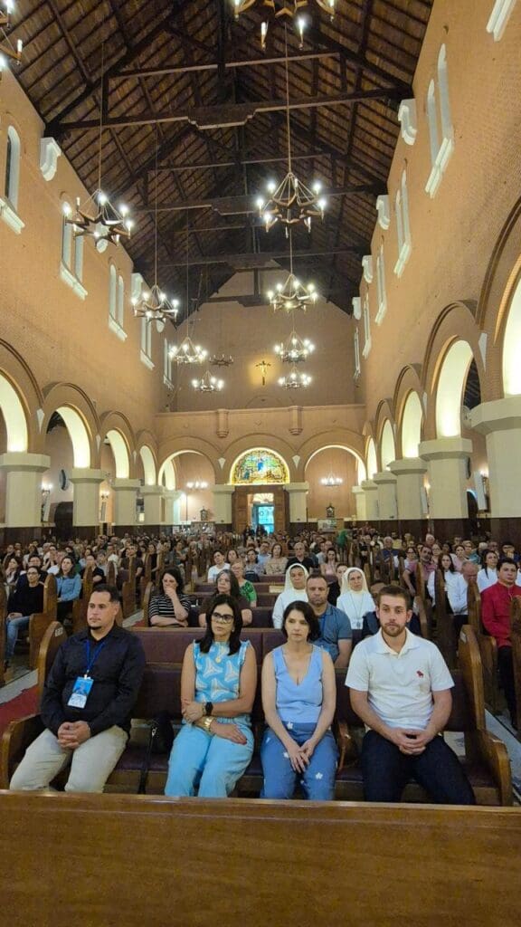 Além das conferências e partilhas em grupo, os participantes celebram missas em paróquias da cidade com a presença da comunidade local.