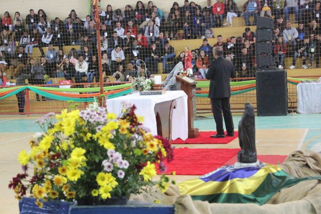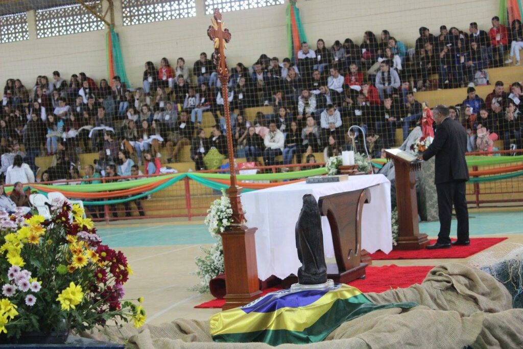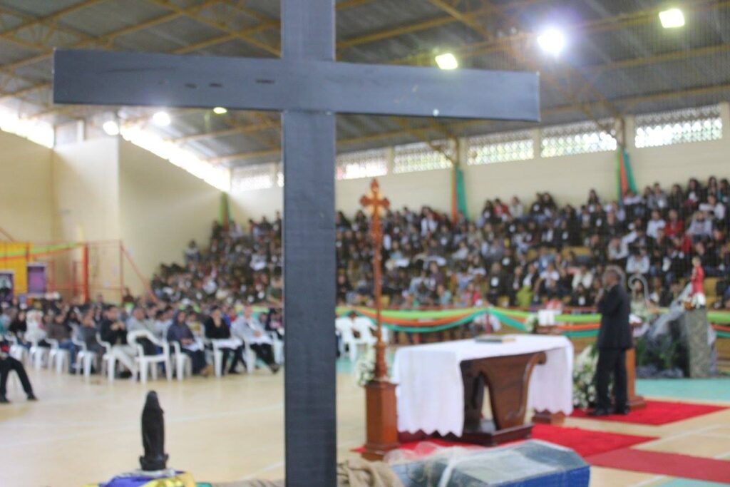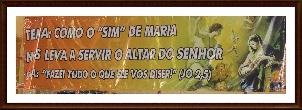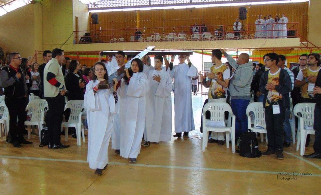 A Paróquia de Santa Catarina de Alexandria – Natércia/MG, sede do encontro diocesano de acólitos do ano passado (2016), levou a Cruz que acompanha todos os encontros. Houve, ainda, uma linda lembrança de como surgiu à ideia de realizar o EDA e uma linda homenagem a Nossa Senhora Aparecida, encontrada no Rio Paraíba, representado pelas águas das doze fontes da cidade de Caxambu. Tendo em vista que vivemos o Ano Nacional Mariano por decorrência da celebração dos 300 anos de Aparecida!