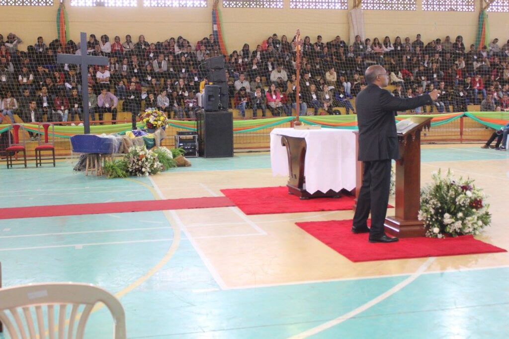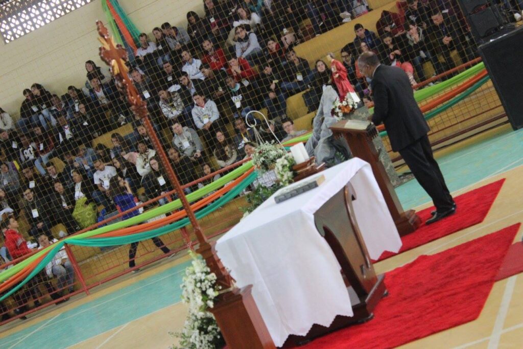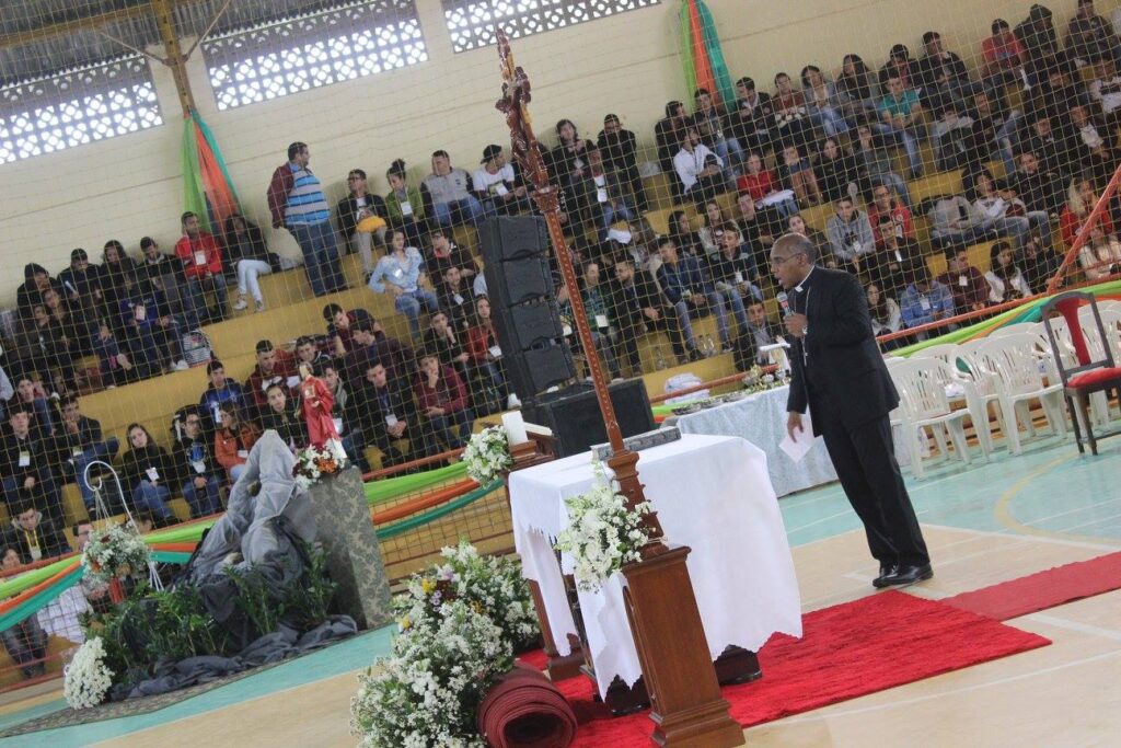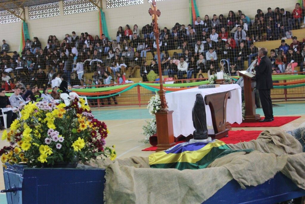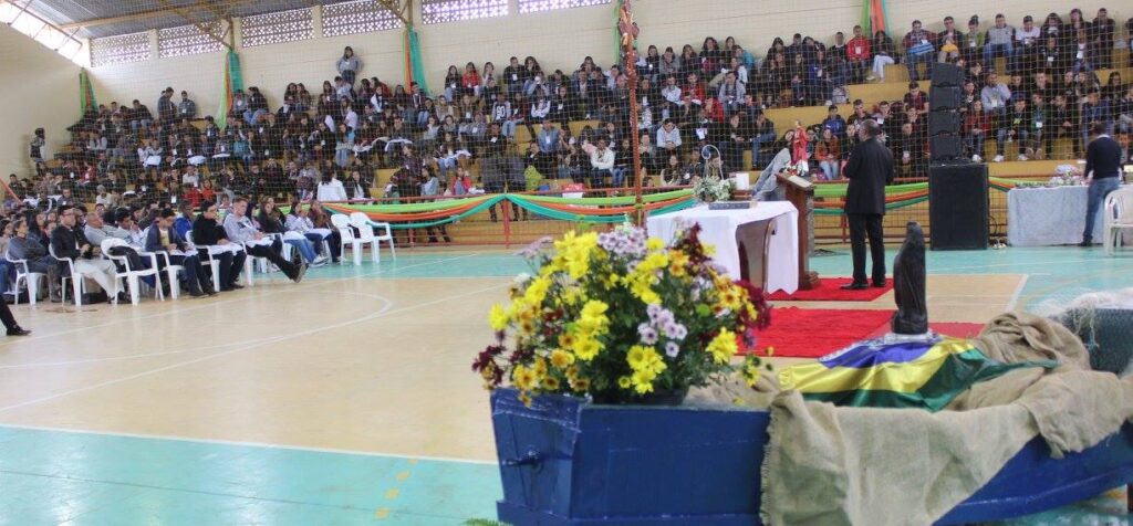 A Paróquia de Santa Catarina de Alexandria – Natércia/MG, sede do encontro diocesano de acólitos do ano passado (2016), levou a Cruz que acompanha todos os encontros. Houve, ainda, uma linda lembrança de como surgiu à ideia de realizar o EDA e uma linda homenagem a Nossa Senhora Aparecida, encontrada no Rio Paraíba, representado pelas águas das doze fontes da cidade de Caxambu. Tendo em vista que vivemos o Ano Nacional Mariano por decorrência da celebração dos 300 anos de Aparecida!