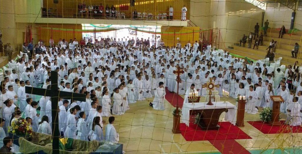 Ao chegar à Matriz de destino, padre Everson realizou a Bênção Solene com o Santíssimo Sacramento, a Igreja tomada pelos acólitos, prostrados diante do Senhor em perfeita e mais sincera adoração.