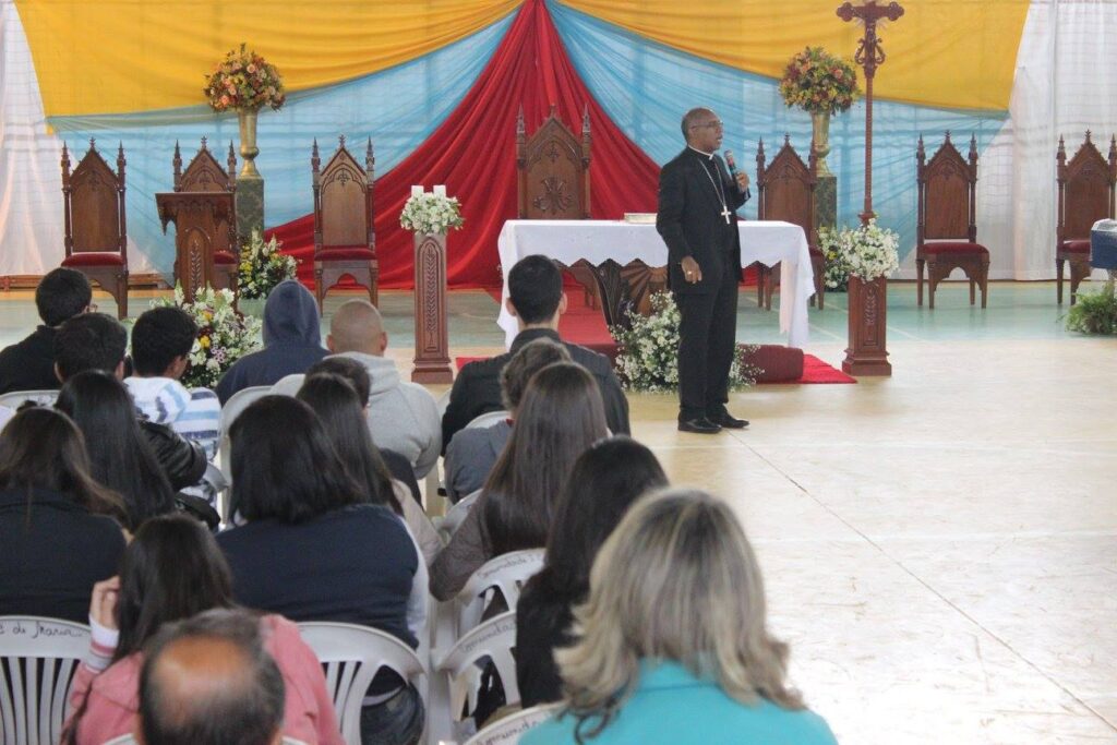 Dom Pedro, realizou com os acólitos um momento de formação. Falando da importância deste ministério, enfatizou que os acólitos, apesar de estarem em uma posição muito próxima do altar, devem ter sempre, muita discrição, zelo, humildade e amor ao serviço ao altar. Lembrou-os que não devem nunca deixar-se cair no automático, em um serviço corriqueiro. Devem sempre servir como se fosse à primeira vez. O mesmo fez comentários, muito úteis aos acólitos, ações que ele observou em suas visitas em nossa Diocese. Acreditamos que sua explanação abriu o olhar e sanou muitas dúvidas dos acólitos que lá estavam.