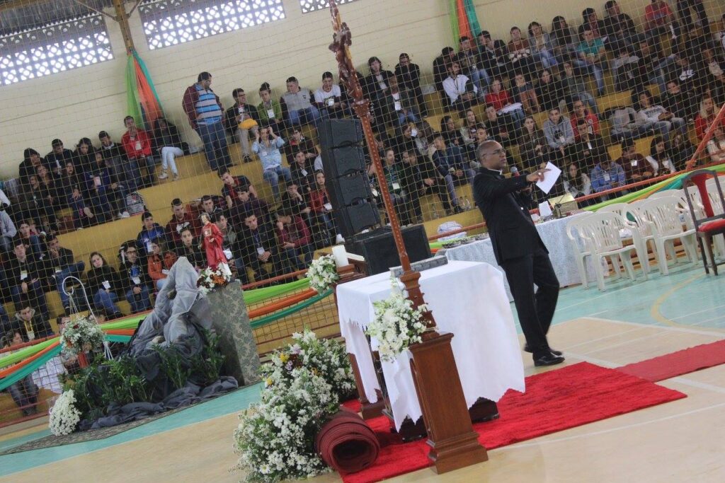 Logo após este momento de acolhida, e de abertura oficial do evento, os representantes da Paróquia São Sebastião, de Varginha, conduziu a oração do Ofício Divino, acompanhada por todos os presentes.