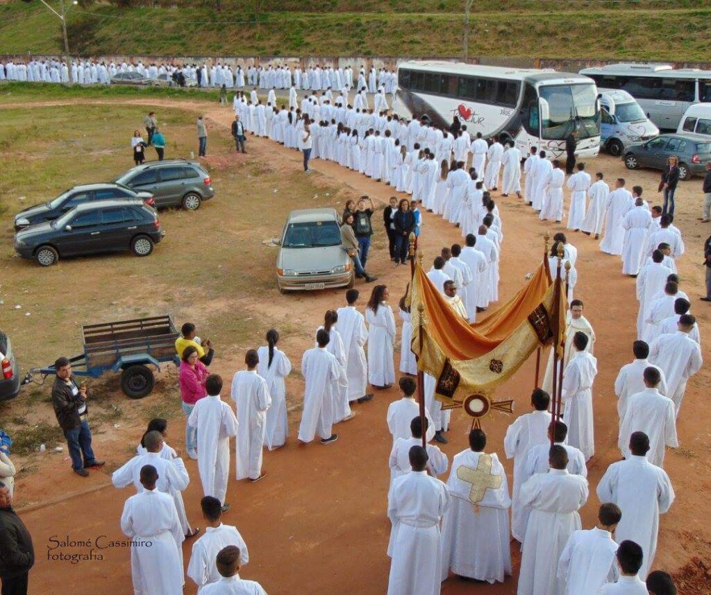 Em seguida, os 840 acólitos presentes seguiram em procissão até a Igreja Matriz de Nossa Senhora dos Remédios, em duas filas, ladeando o Santíssimo Sacramento, que foi transladado pelos Padres Everson, Edson e pelo Padre Noel Victor Gonzaga Reitor do Santuário de Nossa Senhora da Conceição da Beata Nhá Chica em Baependi/MG.
