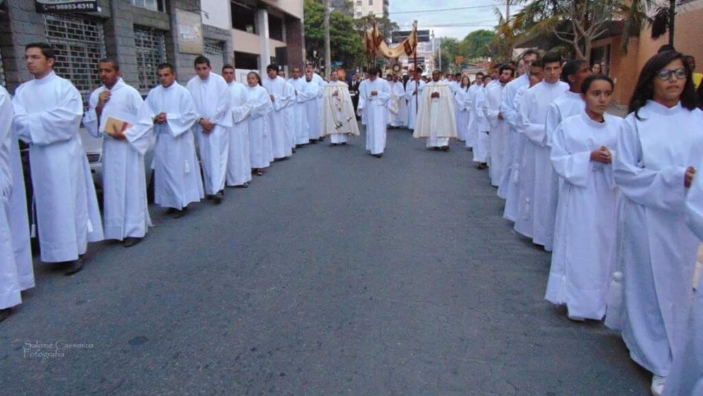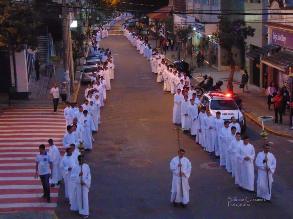 Foi um momento de muita devoção, de prova da entrega e do amor ao serviço do altar, que cada acólito traz no coração. Foi uma procissão silenciosa, organizada, com muito zelo e respeito ao Senhor que estava entre nós. A procissão foi longa, não se conseguia ver, ao mesmo tempo, seu início e seu fim. Uma verdadeira peregrinação eucarística pelas ruas de Caxambu.
