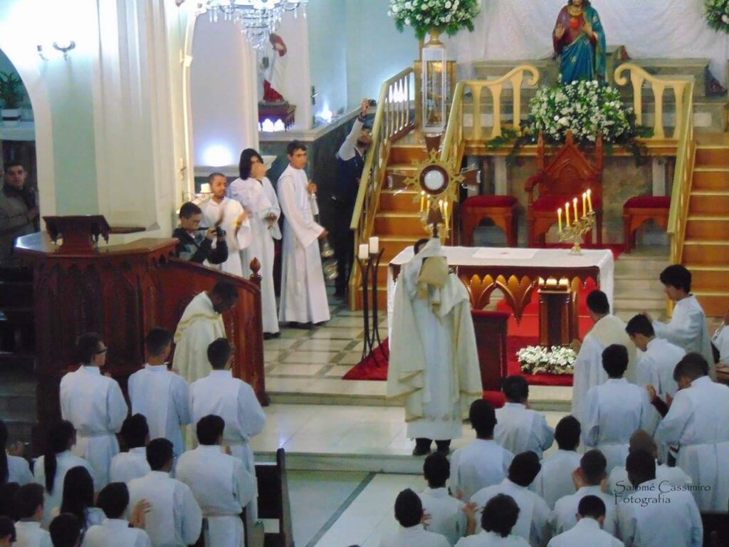 Ao término do dia, o Reverendo Padre Everson de Souza Marcelino presidiu o momento adoração ao Santíssimo Sacramento, todos os acólitos devidamente paramentados, se ajoelharam diante do Cristo Eucarístico no Altar. Momento este para render graças, agradecimentos, fazer pedidos, desejos de serem bons servidores do altar do Senhor.