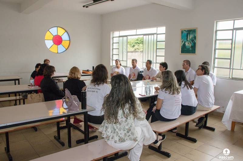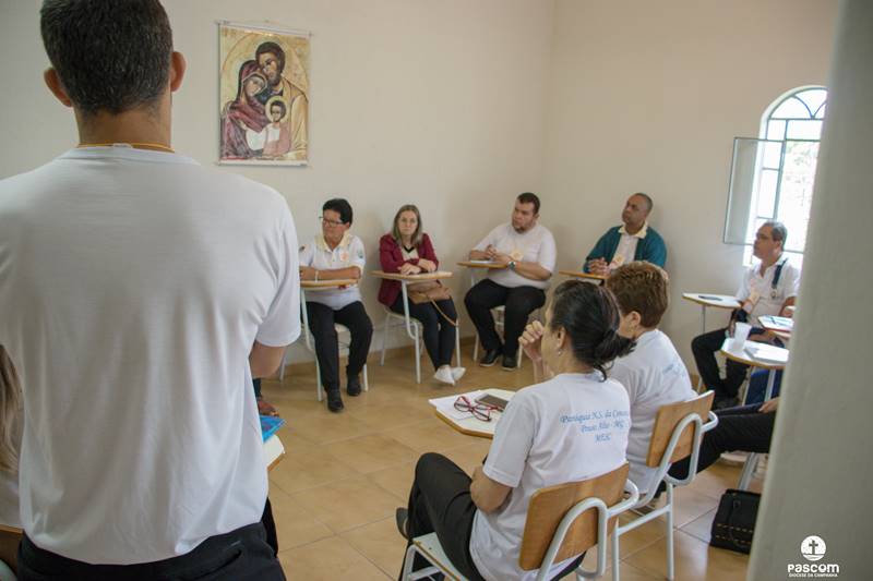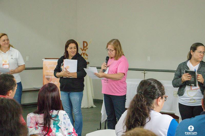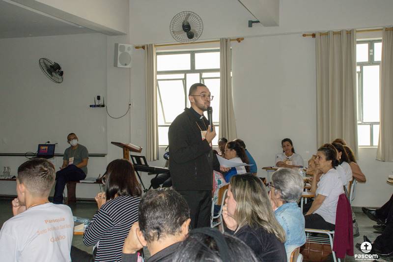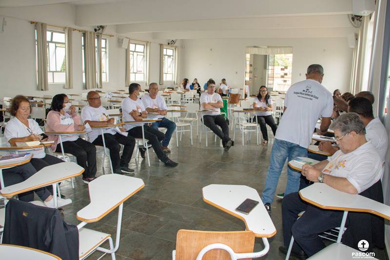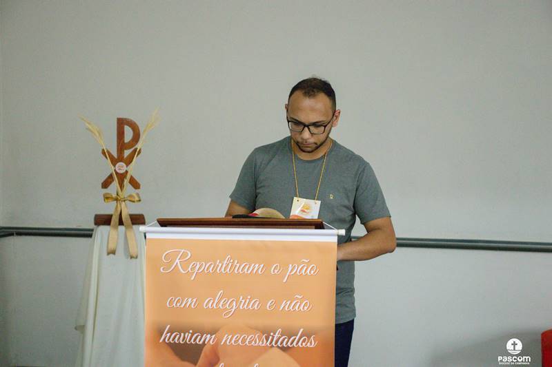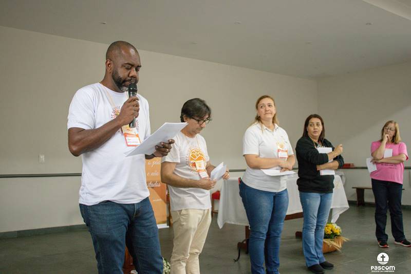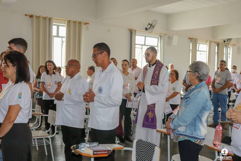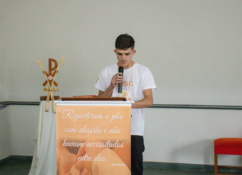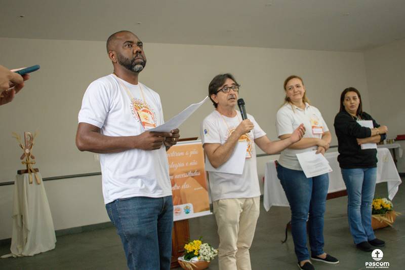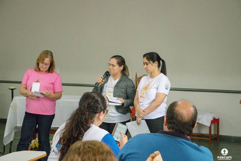 Dando continuidade, a Irmã Francisca (Camiliana) da Paróquia Cruzília, descreveu sobre o Tema “Pão em todas as mesas” e o lema “Repartiam o pão com alegria, não havia necessitados entre eles”, conteúdo esclarecedor e muito importante para o Ministério Extraordinário da Sagrada Comunhão. Após a palestra os representantes se reuniram em grupos, por forania e discutiram algumas questões propostas pela Equipe Diocesana. Em seguida foi celebrada a Santa Missa, presidida pelo Padre Flávio.