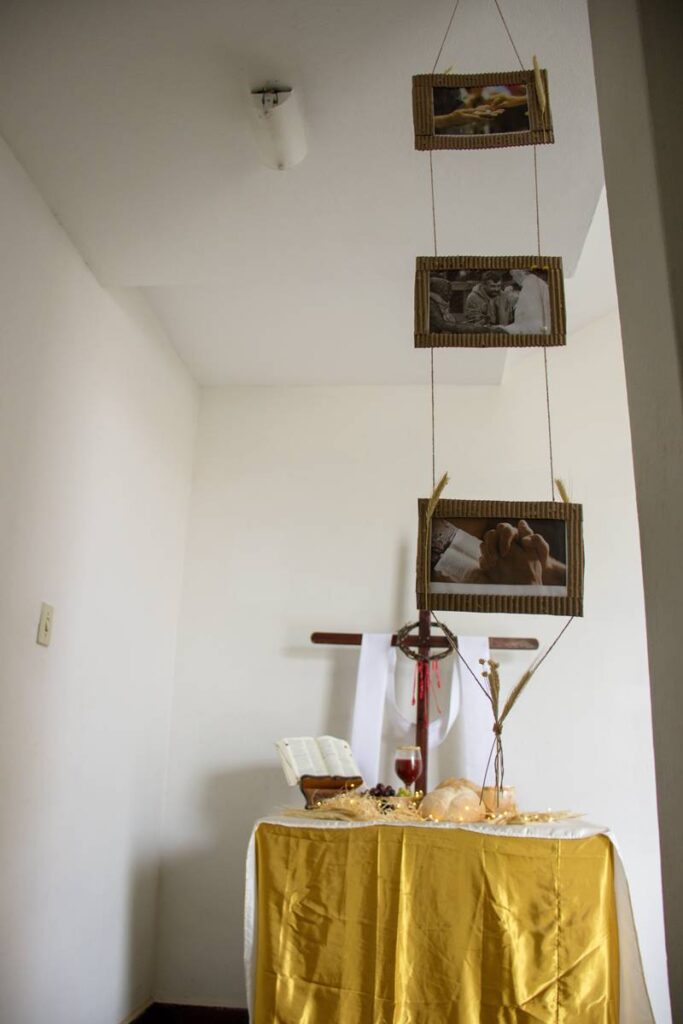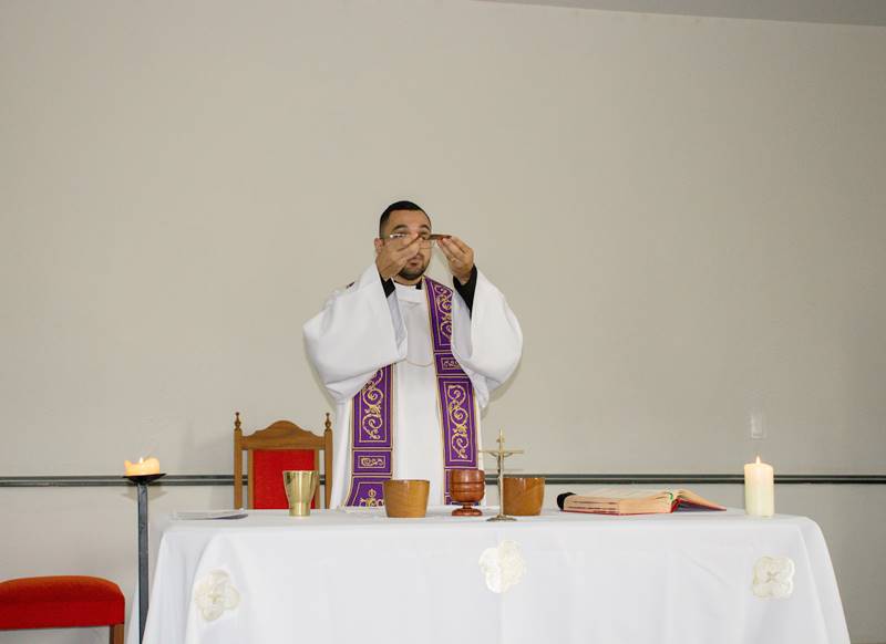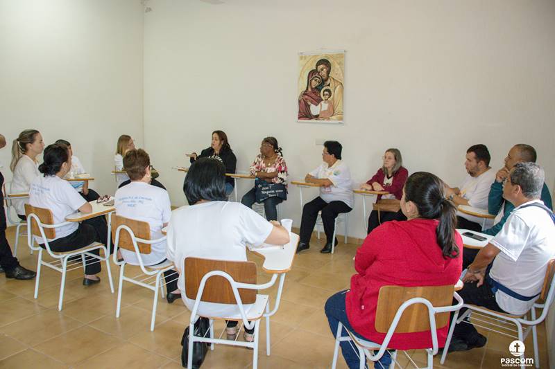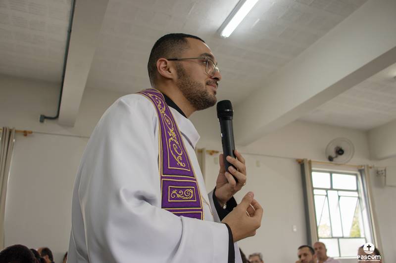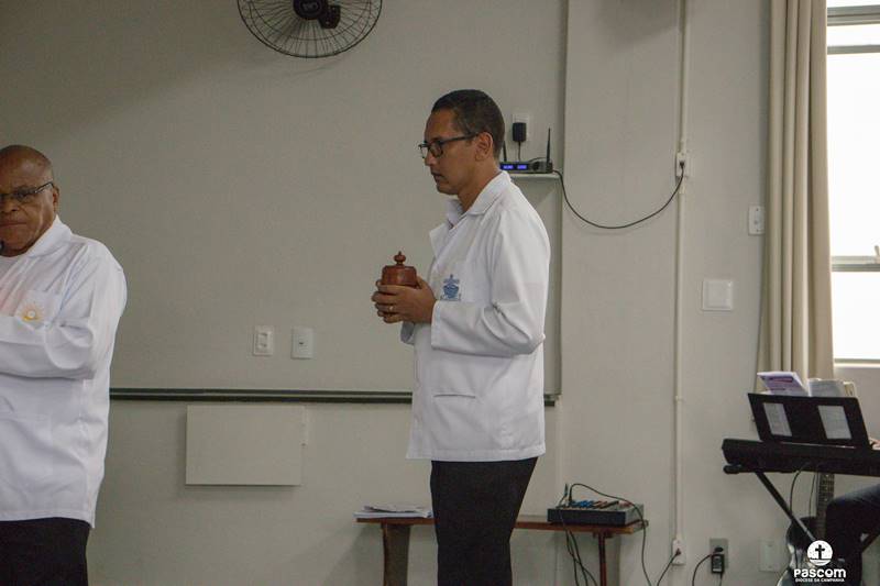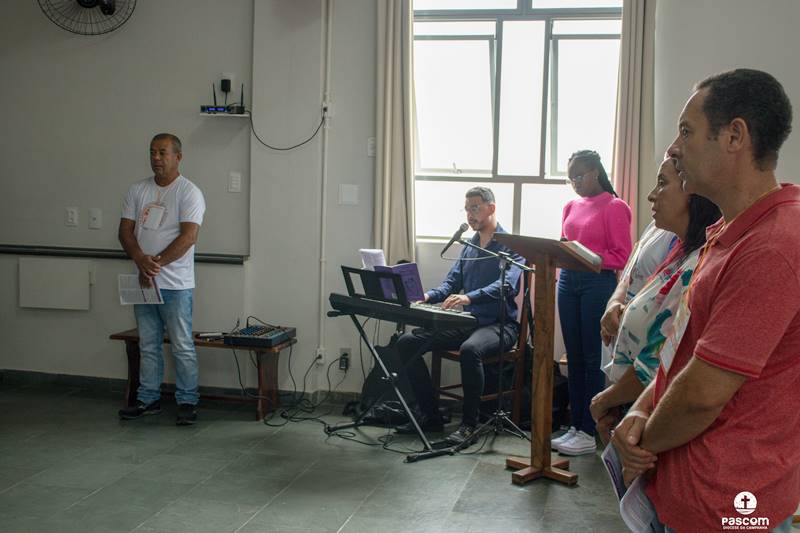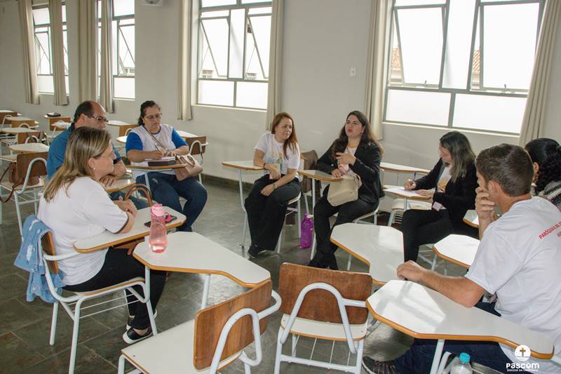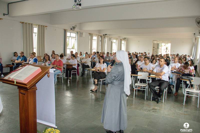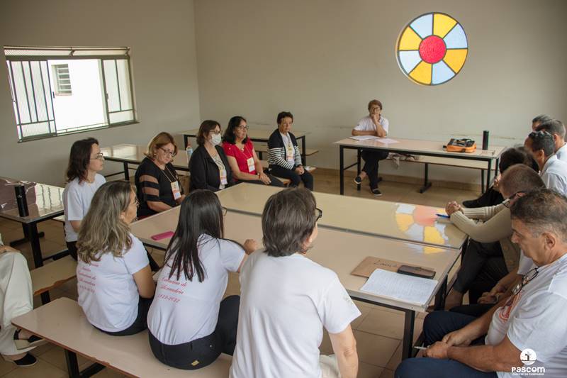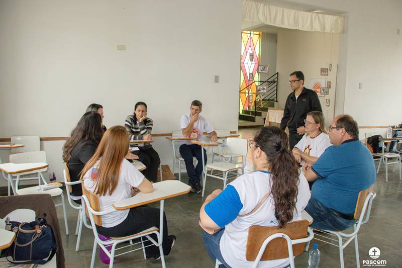Dando continuidade, a Irmã Francisca (Camiliana) da Paróquia Cruzília, descreveu sobre o Tema “Pão em todas as mesas” e o lema “Repartiam o pão com alegria, não havia necessitados entre eles”, conteúdo esclarecedor e muito importante para o Ministério Extraordinário da Sagrada Comunhão. Após a palestra os representantes se reuniram em grupos, por forania e discutiram algumas questões propostas pela Equipe Diocesana. Em seguida foi celebrada a Santa Missa, presidida pelo Padre Flávio.
