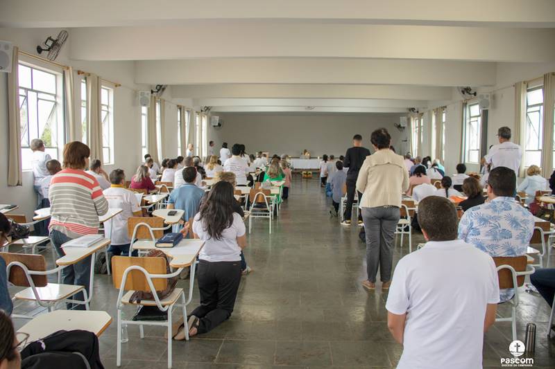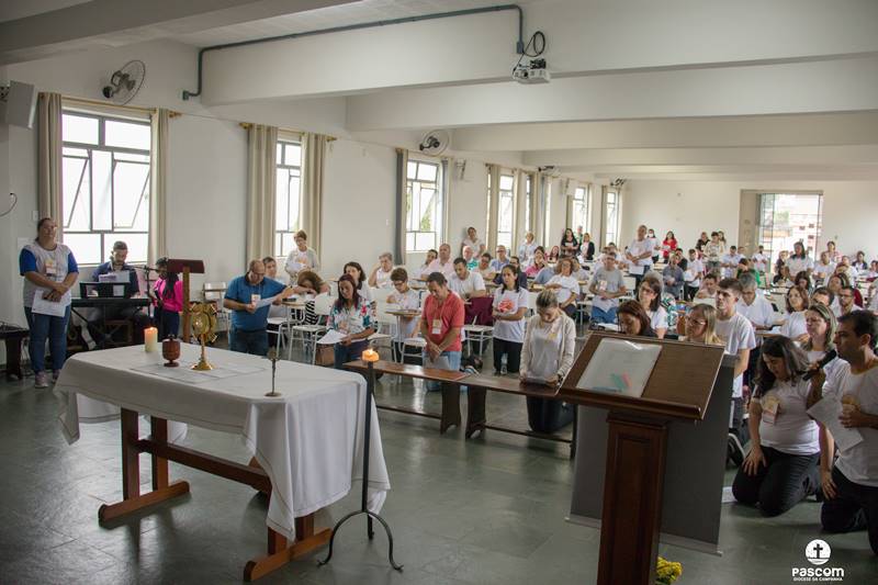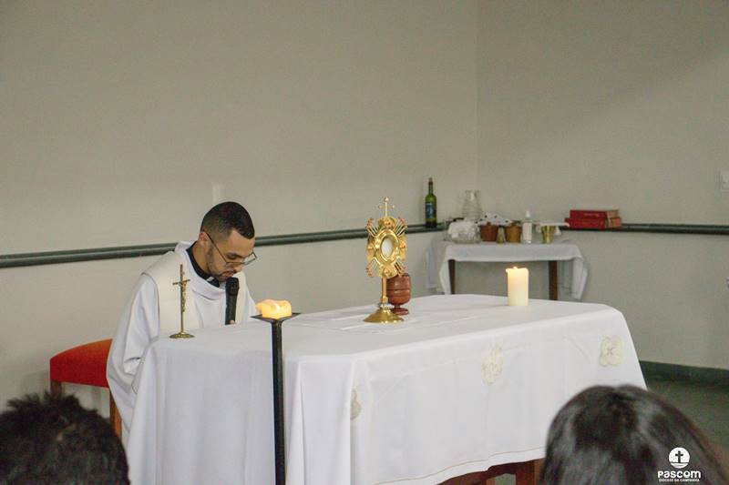 Logo após, os participantes se dirigiram para um delicioso almoço preparado pela “equipe” do Padre Flávio, pais, tias e amigas. O representante de cada grupo forâneos apresentou sua partilha sobre os assuntos tratados nos debates, tornando muito precioso esse momento. Após as considerações finais iniciou-se a Adoração ao Santíssimo Sacramento, momento este muito aguardado por todos.