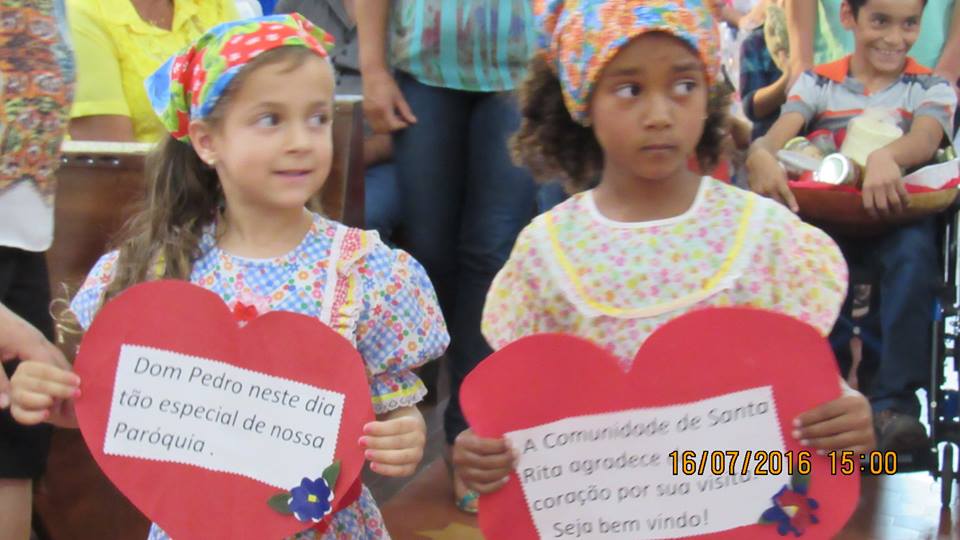 As 27 comunidades rurais também rezaram a Novena e no dia da Festa vieram em romaria para a tracional missa das 14:00 horas que este ano foi presidida pelo Bispo Diocesano Dom Pedro Cunha Cruz. Cada comunidade trouxe a imagem do padroeiro em procissão lotando a Igreja Matriz. A presença do nosso Bispo nos encheu de alegria e fortaleceu nossa vida de comunidade. Dentre as palavras do nosso pastor ressaltamos três que foram marcantes: “Vendo as comunidades entrarem com seus padroeiros me veio no coração o Evangelho deste dia, ai estão minha mae e meus irmãos”; “Vocês são muitas comunidades que foram uma só comunidade, a familia de Jesus”; “Amem Maria, Nossa Senhora, tenham orgulho de serem filhos (as) dela”. As comunidades rurais ficaram gratas pela presença, acolhida e carinho do Bispo Diocesano.