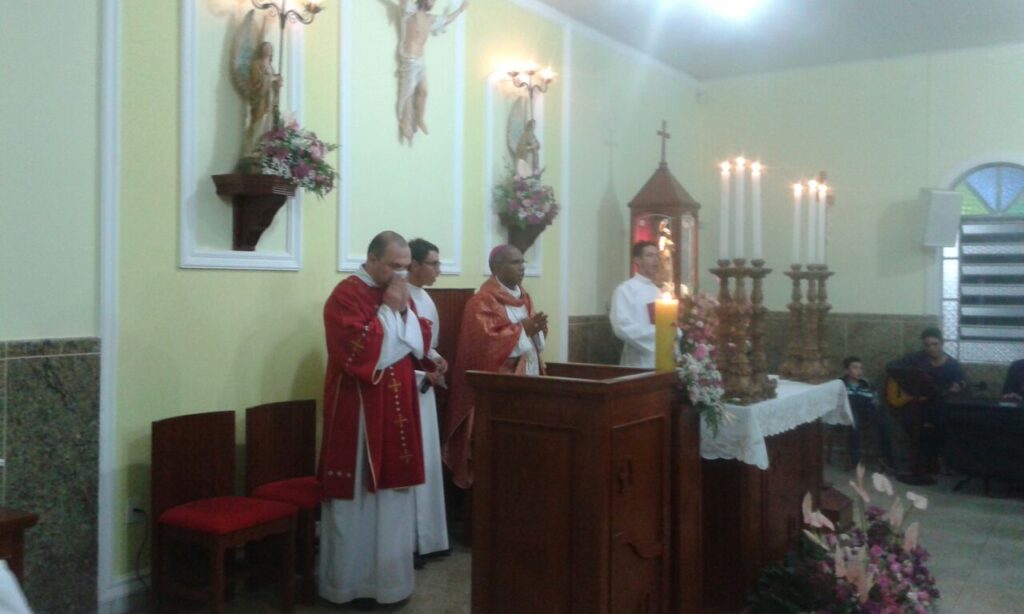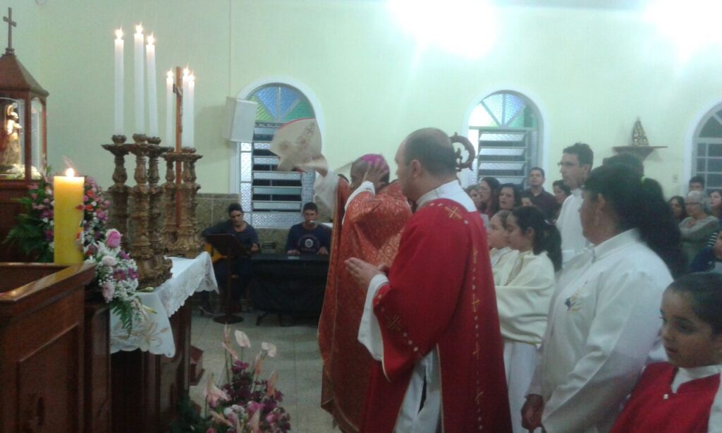 A Comunidade se alegrou com a presença tão carinhosa de Dom Pedro, que foi acolhido com fogos, cantos e grande festa à entrada da Capela. Após sua entrada, venerou a centenária imagem da Padroeira, fez um momento de oração na Capela do Santíssimo e após a Missa conheceu as dependências do Recinto de Festas da Comunidade e também tomou conhecimento do projeto de restauração do telhado e pintura externa da Igreja.