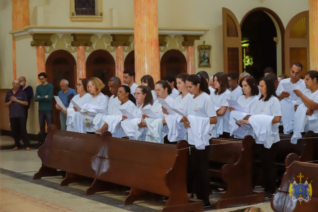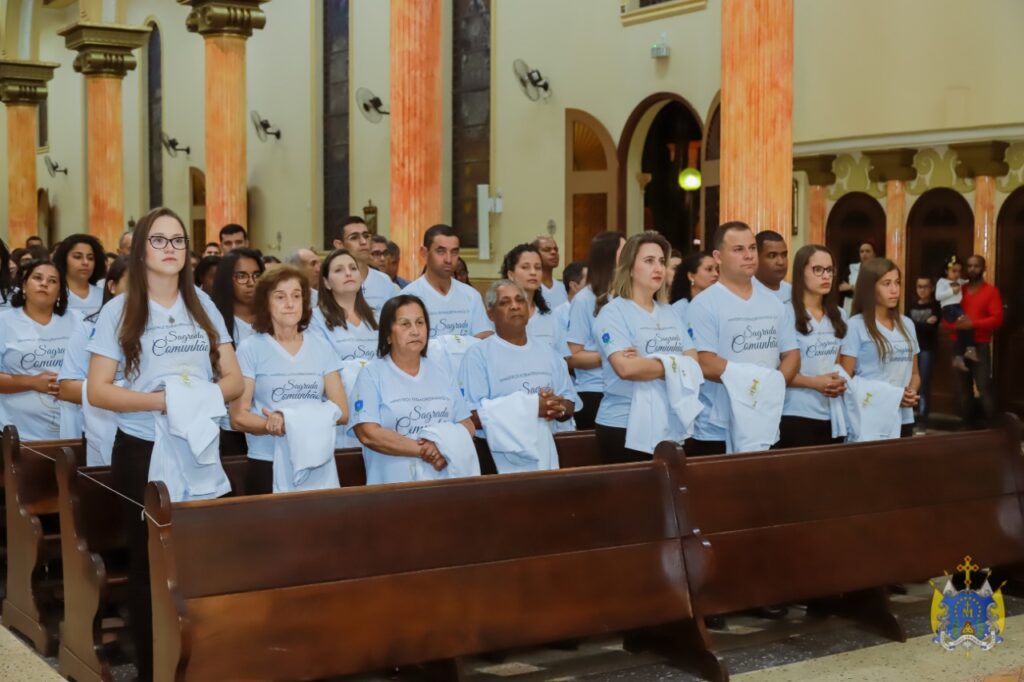 Na sexta-feira, dia 30 de agosto, nossa diocese celebrou a instituição de 114 Ministros Extraordinários da Sagrada Comunhão realizada na Forania Beato Padre Victor, situada na região norte de nossa diocese da Campanha. A celebração aconteceu na matriz de Nossa Senhora D` Ajuda. Os novos integrantes são das Paróquias Nossa Senhora do Rosário, Córrego do ouro; Paróquia Nossa Senhora D`Ajuda e Paróquia Nossa Senhora das Graças, ambas em Três Pontas; Paróquia do Divino Espírito Santo, Coqueiral; Paróquia de Nossa Senhora Aparecida, Ilícinea.