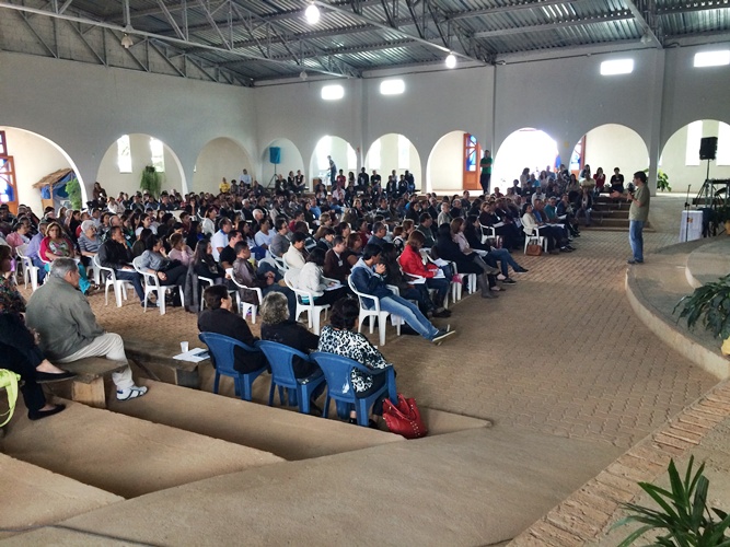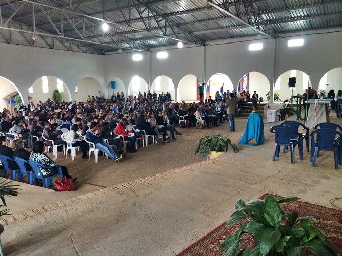 No período da tarde os participantes se reuniram em 20 grupos, para responder 2 perguntas com base na exortação: