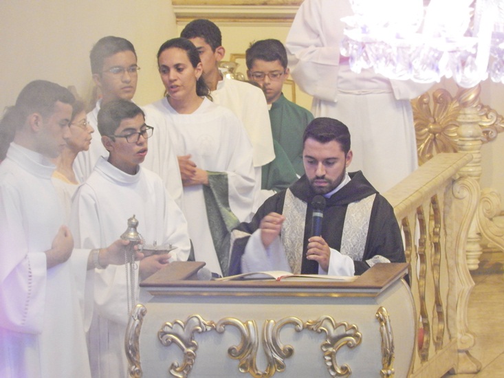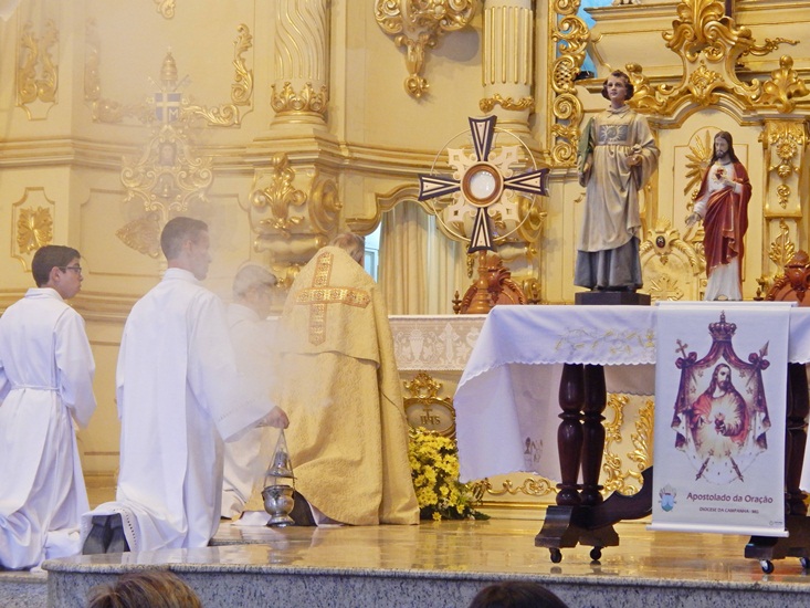 Terminada a Hora Santa, todos participaram daCelebração Eucarística. Presidida pelo assessor dos MESC, Pe. Carlos Ribeiro Natali, e concelebrada pelos pe. Geraldo Inácio, reitor da Basílica, e diácono Jean, foi o ponto alto da Jornada. Via-se a alegria e a fé dos participantes que louvavam agradecidos a Jesus Cristo, que a todos estende sua infinita misericórdia.