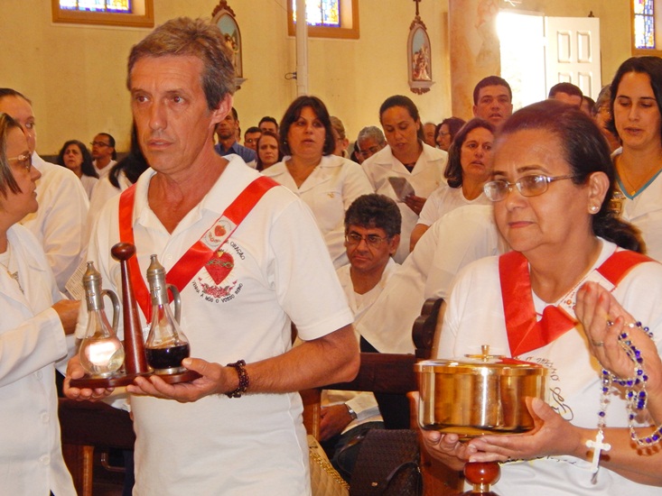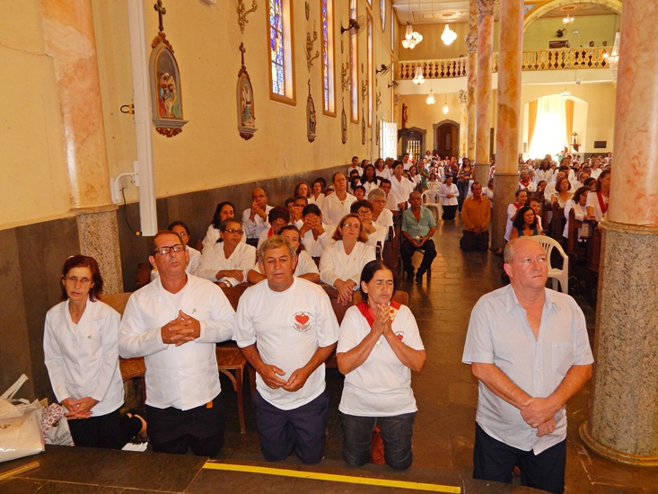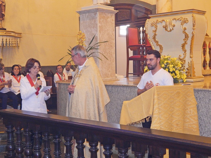 Às 15h todos os participantes passaram pela Porta Santa da Misericórdia e fizeram uma Hora de Adoração diante do Santíssimo Sacramento, conduzida pelo padre Roberto Donizetti. Ao final da mesma, o reverendíssimo padre recebeu uma homenagem pelos 16 anos que animou incansavelmente ambos os grupos no âmbito diocesano.