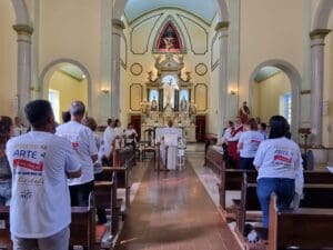 No último final de semana vivemos um dia de graça em nossa paróquia de São Sebastião, em Cambuquira, na Jornada de Oração pela Arte com a artista Junia Rocha e nosso pároco, padre Alex.