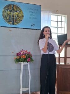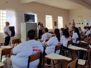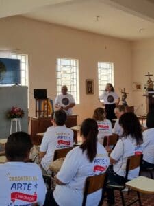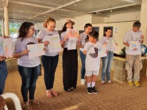 Em oficina criativa, os grupos deram vida à inspiração através de músicas, orações, danças e desenhos, expressando a fé de forma única e sensível.