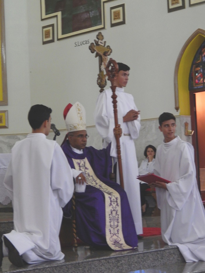 Trinta e nove jovens e adultos foram crismados. Na sua homília sua Excelência Reverendíssima Dom Pedro Cunha Cruz exortou e encorajo os jovens a perseverarem na comunidade de Fé. Antes da bênção conclusiva da Missa, dois jovens agradeceram a acolhida, apoio e incentivo a eles.
