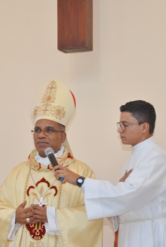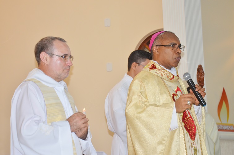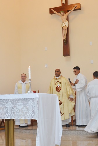 Durante a celebração Dom Pedro falou a todos, mas principalmente aos jovens que ali estavam usando para isso a frase de Jesus na liturgia do dia: ”Eu sou o Caminho, a Verdade e Vida”. Foi muito bom perceber que todos o escutavam atentamente. Mostrou que nem sempre o caminho que parece fácil é o mais correto a seguir, mas que com Jesus encontramos a Verdade e a Vida plena. Convidou aos jovens para fazerem parte de uma Pastoral ou Movimento, dizendo que na Igreja tem lugar para todos eles.
