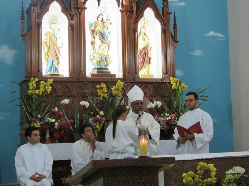 Dom Pedro refletiu sobre a temática “o SIM à Maria”. Maria tem uma importância fundamental na vida do povo e da igreja; ela nos conduz a Cristo, através de seus ensinamentos, e nos mostra que devemos estar em oração, seja em casa, no local de trabalho, na caminhada…, onde estivermos, é preciso estar em oração! Maria não fica em si, está em saída, nos ensina isso e se coloca a serviço desta igreja.