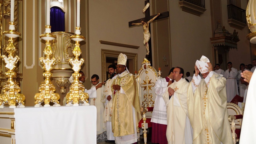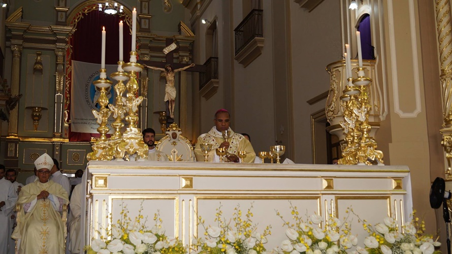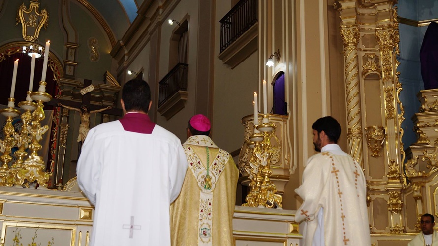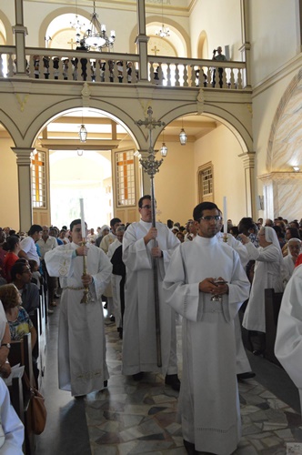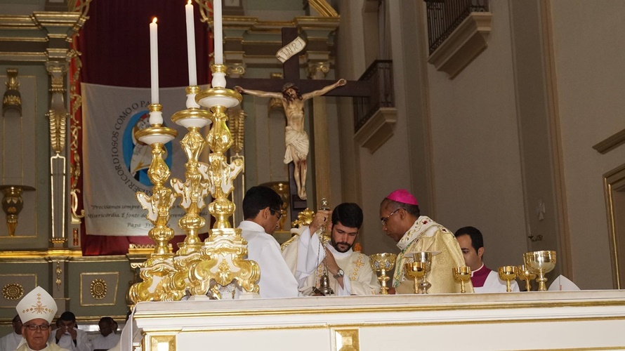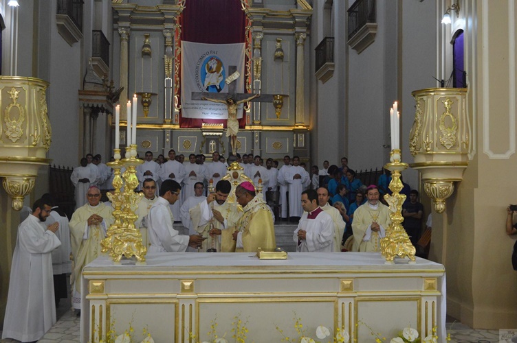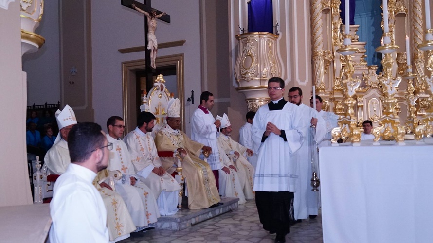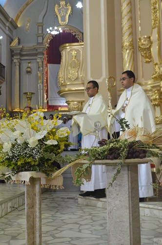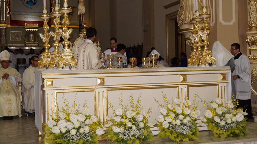 Na manhã desta quinta-feira santa, dia 24 de março, foi celebrada na CatedralSanto Antônio, sé diocesana de Campanha, a solene missa crismal, presidida pelo nosso bispo D. Pedro Cunha Cruz. Nessa celebração o clero diocesano, na presença de seu pastor, renovam solenemente as promessas que fizeram no dia de sua ordenação. Também na celebração são abençoados os óleos dos enfermos e dos catecúmenos e abençoado o Santo Crisma.