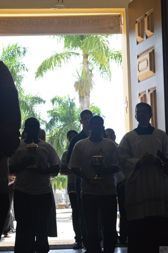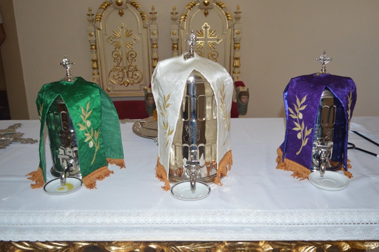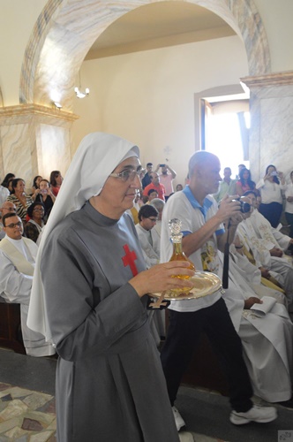 Após a homilia, D. Pedro conduziu a renovação das promessas sacerdotais e foi acompanhado pelo clero presente. Em seguida, iniciou-se a procissão dos óleos: irmão Augusto César, da congregação do Sagrado Coração, de Campanha, conduziu o recipiente com o óleo dos Enfermos; Pe. Silvane, da paróquia de S. Gonçalo, conduziu o óleo dos Catecúmenos, e o diácono José Rodrigo, o santo Crisma. Dos três óleos, o Santo Crisma é misturado com um bálsamo perfumando para recordar que todos aqueles que, com ele são ungidos, carregam também o bom odor do Cristo.
