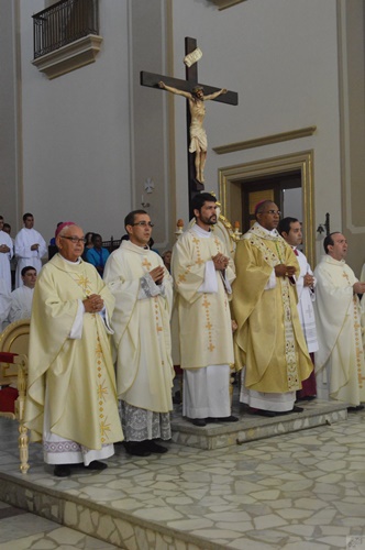 O clero diocesano participou quase que na sua totalidade. Já é costume em nossa diocese também a participação de padres regulares, pertencentes deordens e/ou congregações, que auxiliam na Semana Santa nas diversas paróquias da diocese. A estimativa é que participaram da celebração cerca de 120 presbíteros. Além do clero, seminaristas e religiosos também se fizeram presentes.