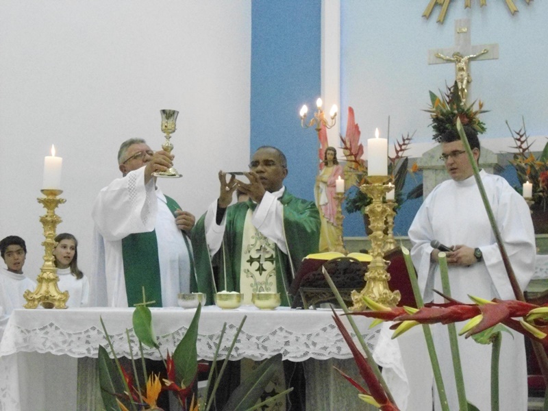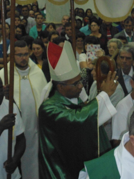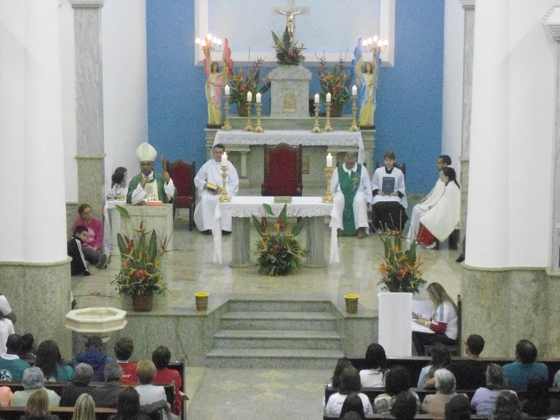 A celebração presidida por ele contou com a participação de todos as Pastorais, Movimentos e Comunidades (urbanas e rurais) de nossa Paróquia. E após o encerramento o Bispo recebeu algumas lembranças com produtos típicos da nossa região.