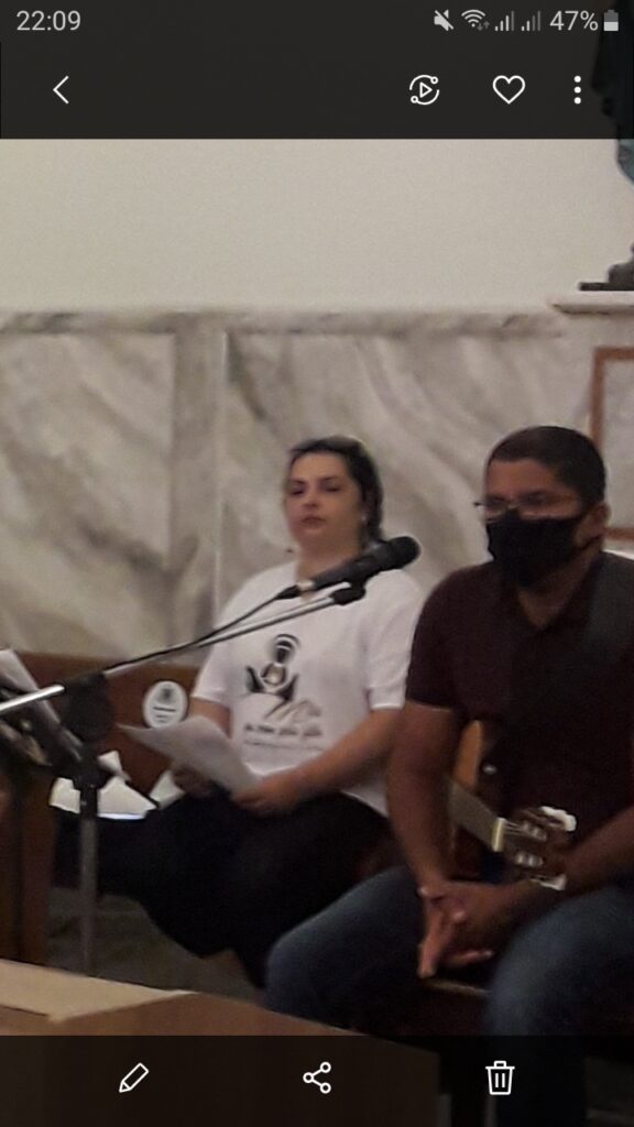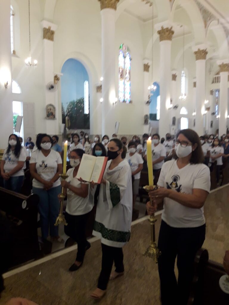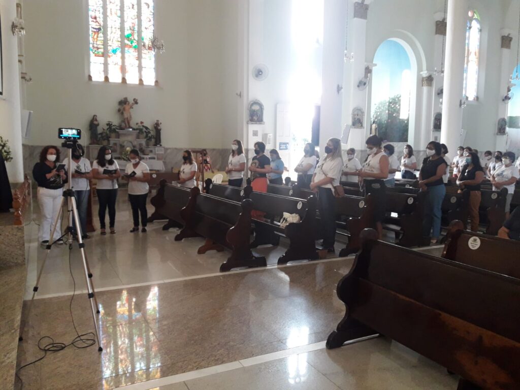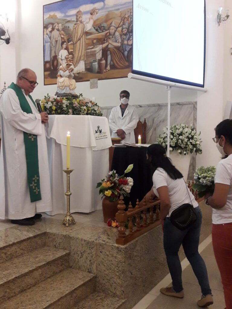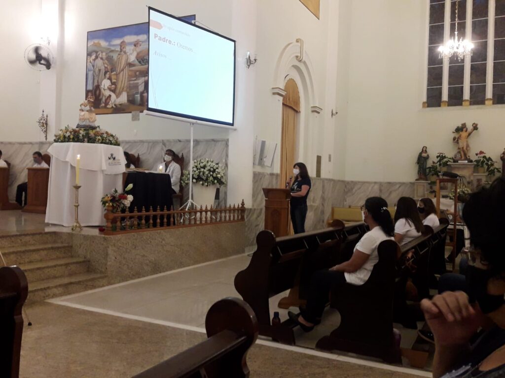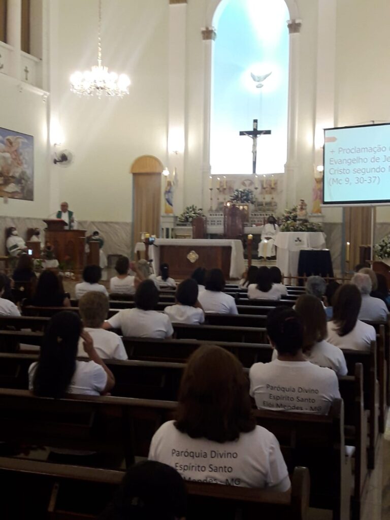 A Santa Missa foi celebrada no domingo às 17h, pelo Diretor Espiritual Diocesano e Provincial padre Luís Augusto Furtado, na Igreja Matriz Divino Espirito Santo, em Elói Mendes/MG, sendo transmitida pelo facebook da paróquia.