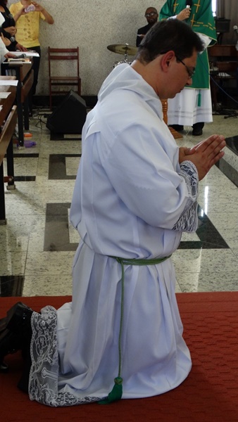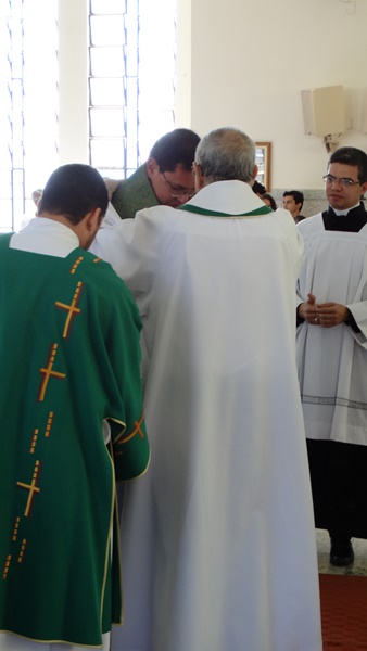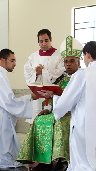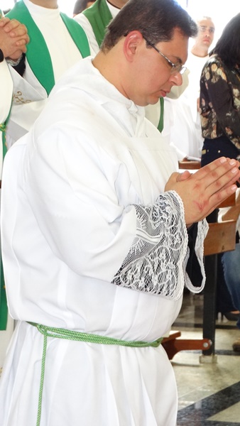 Foto-60Na manhã de 28 de Agosto, 22º Domingo do Tempo Comum, apadrinhado por Santo Agostinho comemorado neste mesmo dia, pela oração da Igreja e imposição das mãos de nosso Bispo Diocesano, Dom Pedro Cunha Cruz, foi ordenado Diácono para o serviço da Igreja Cleiton Gregório Evaristo, filho da Paróquia de Sant’Ana de Varginha – que comemora seus 25 anos de instalação – onde ocorreu a celebração.