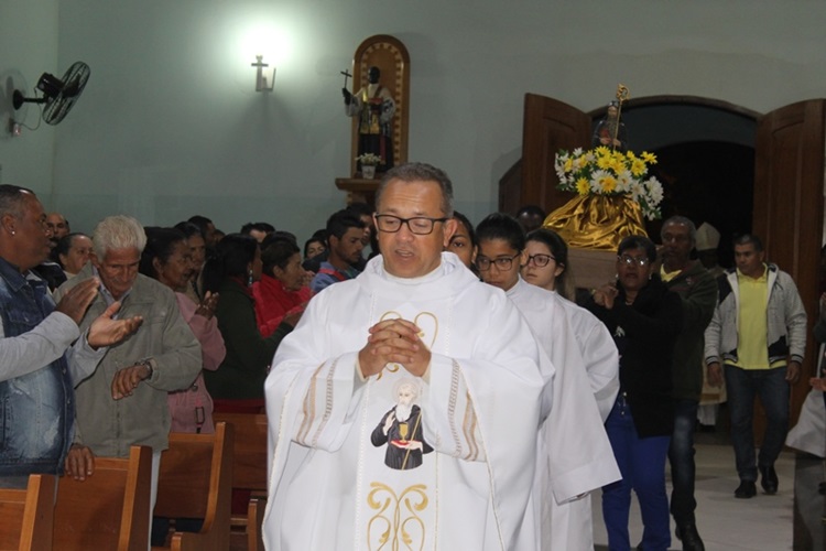 Na noite do dia 11, os fiéis devotos levaram solenemente o Andor do Senhor São Bento em procissão, fazendo algumas paradas para conhecer a vida, a história e os muitos milagres atribuídos ao grande santo, exorcista e mestre compilador da regra que ainda hoje norteia a vida e o caminhar de muitas e muitas famílias religiosas. Na chegada da procissão tivemos a Santa Missa presidida por Sua Excelência Reverendíssima Dom Pedro Cunha Cruz, nosso bispo diocesano e concelebrada pelos padres Simão Stock Miguel, José Honório, Carlos Ribeiro Natali e Joaquim José Soares.